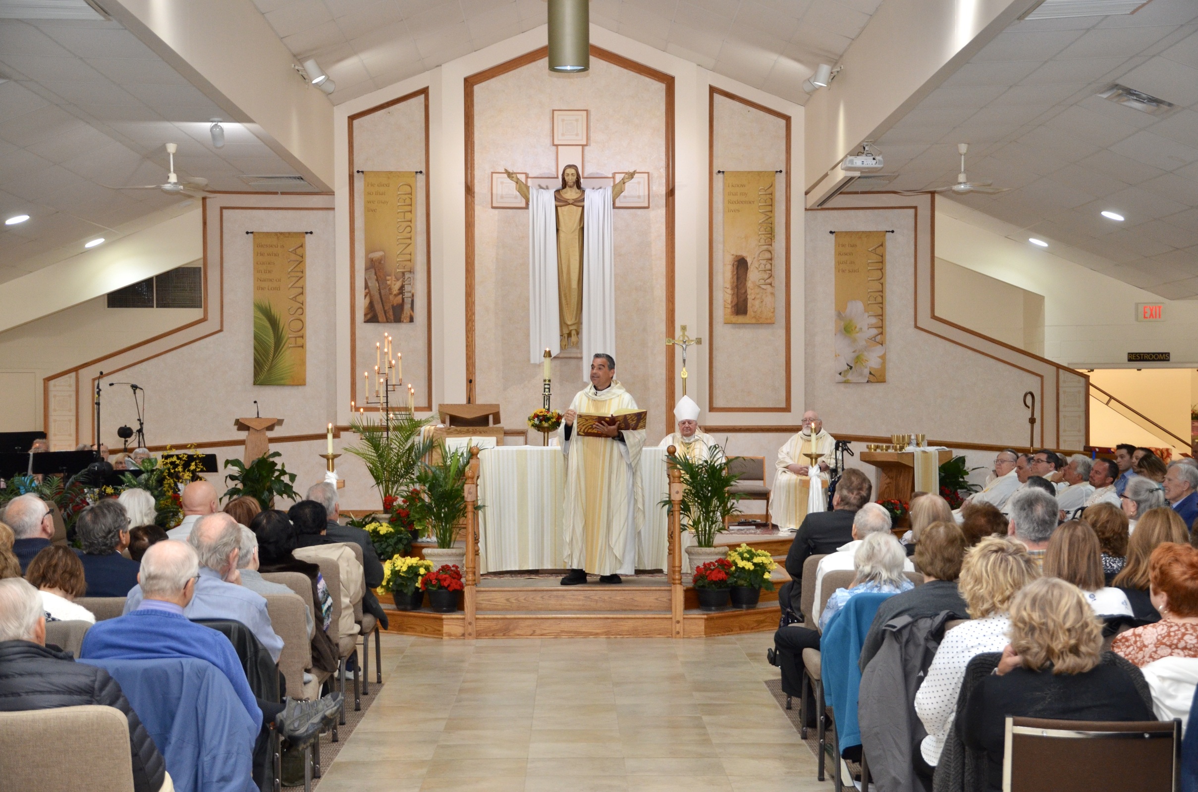 In the second reading, St. Paul wrote to the Ephesians: “… grace was given to each of us according to the measure of Christ’s gift. And he gave some as apostles, others as prophets, others as evangelists, others as pastors and teachers, to equip the holy ones for the work of ministry, for building up the body of Christ …” Father Denk asked the faithful to pray that he might be “a good, holy, compassionate pastor to you ‘to equip’ you in your work of ministry as we build up the body of Christ here at St. Matthias. I hope I’m equipped to fulfill my role (as pastor).”