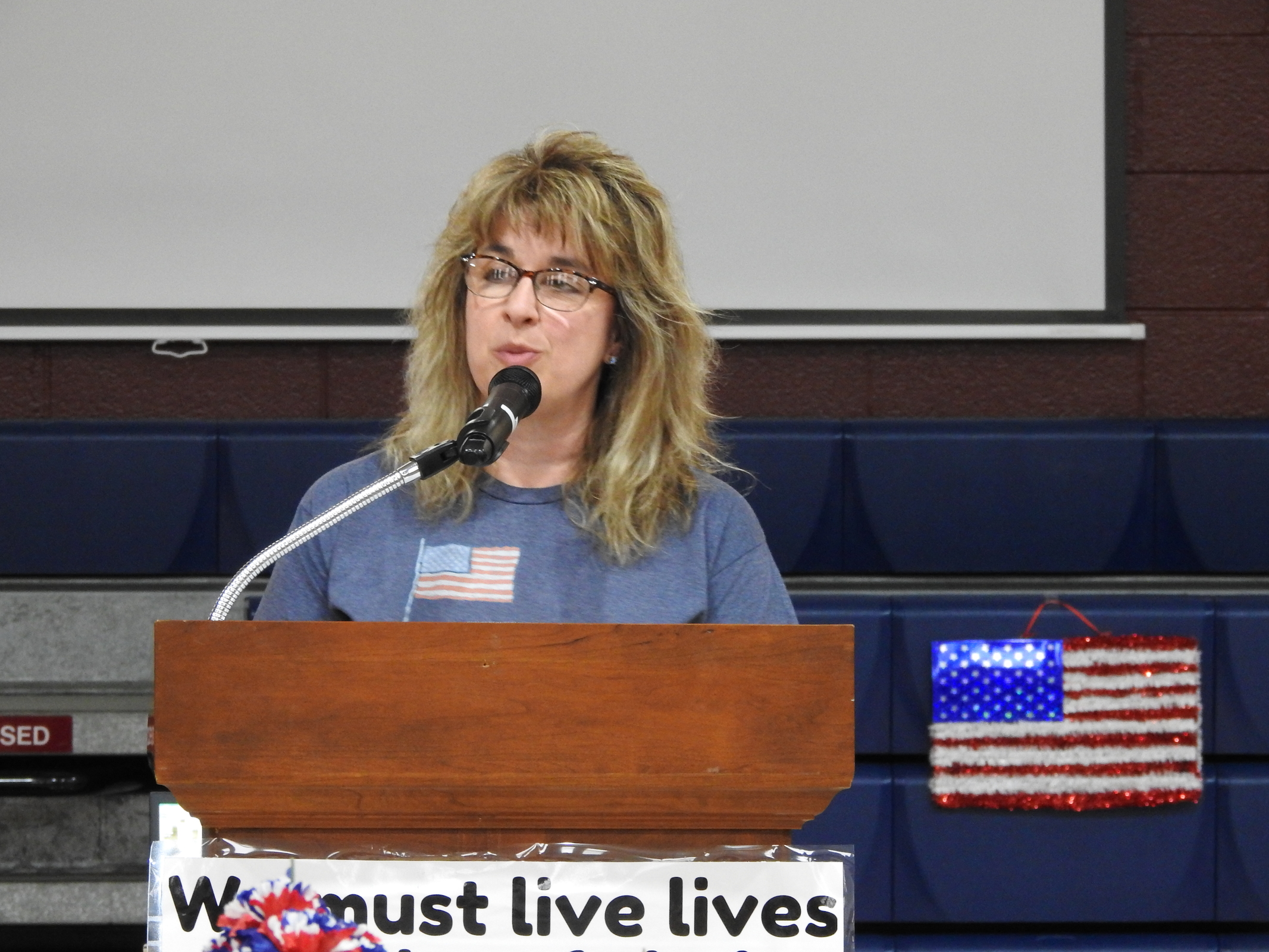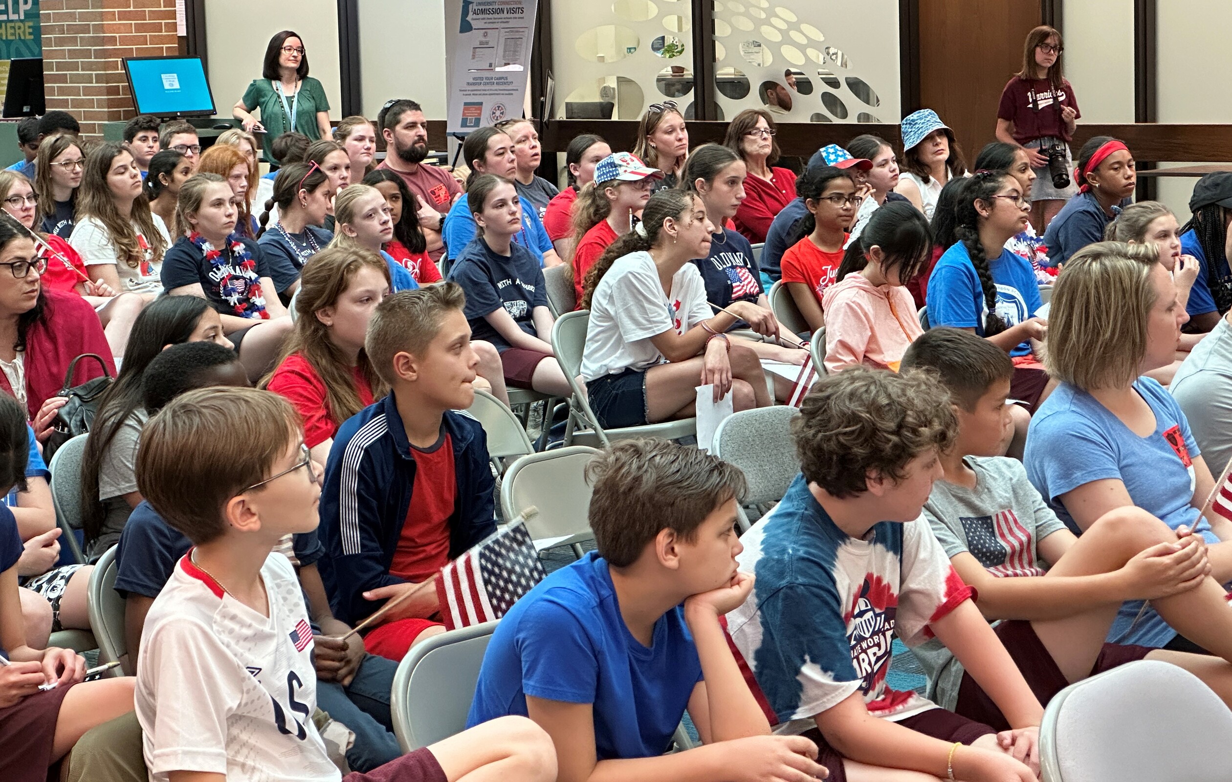 After welcoming remarks and a brief introduction, the National Anthem was sung and interpreted in American Sign Language, followed by the Pledge of Allegiance, which was both recited and interpreted in ASL. A student presentation discussed Memorial Day as an occasion to celebrate the nation’s heroes. Another student described a hero. The group then watched a brief video on discipline and freedom, followed by an interactive presentation.