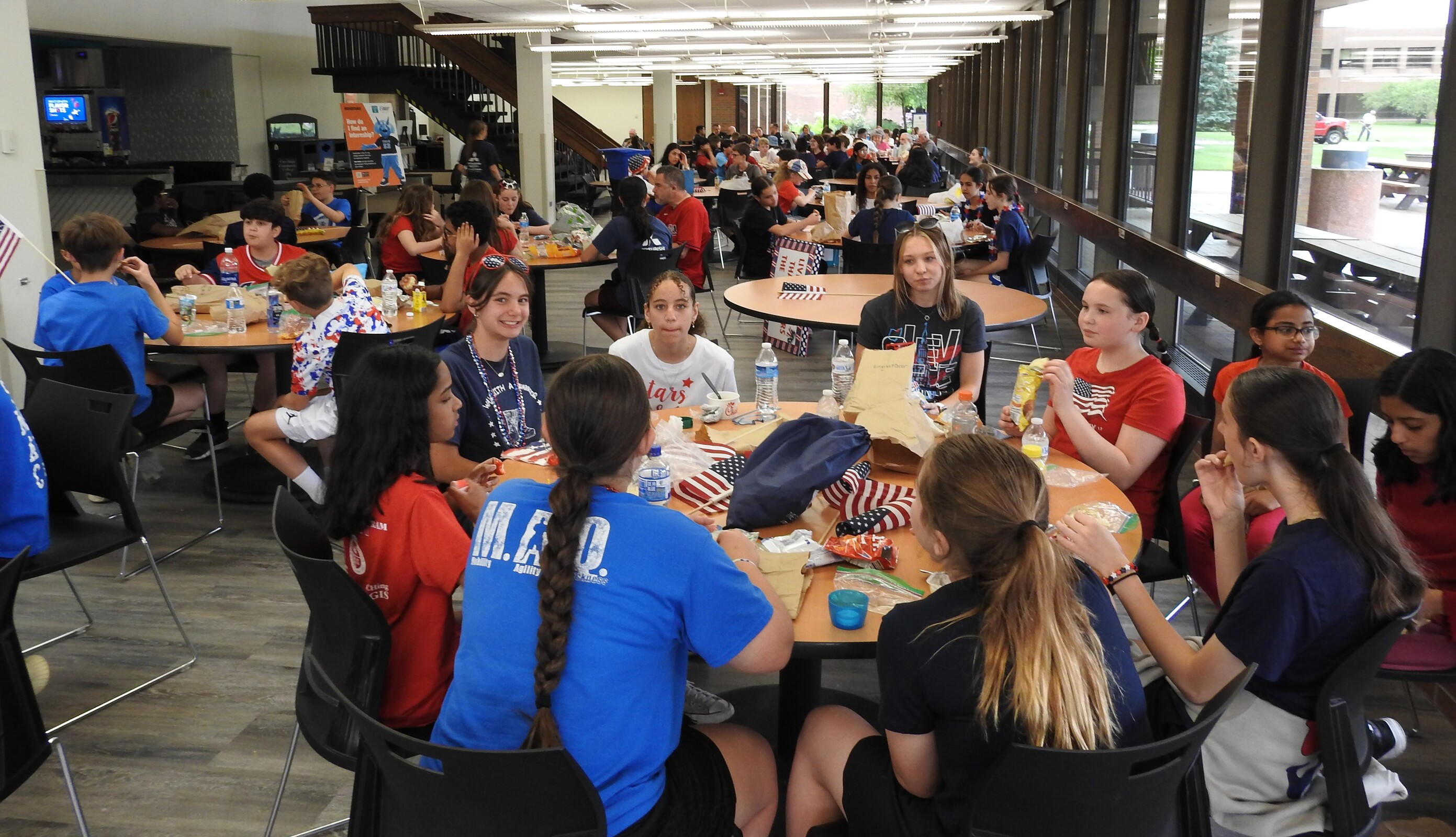 Escorted by Parma Heights police, the group was “clapped out” by younger students as they left the IWA property on Pearl Road, crossed the street and worked their way to York Road. After arriving at Tri-C, they had lunch and then moved into the Atrium for a special program focusing on D-Day. June 6 will mark the 80th anniversary of D-Day, which was the turning point of World War II for the Allies.