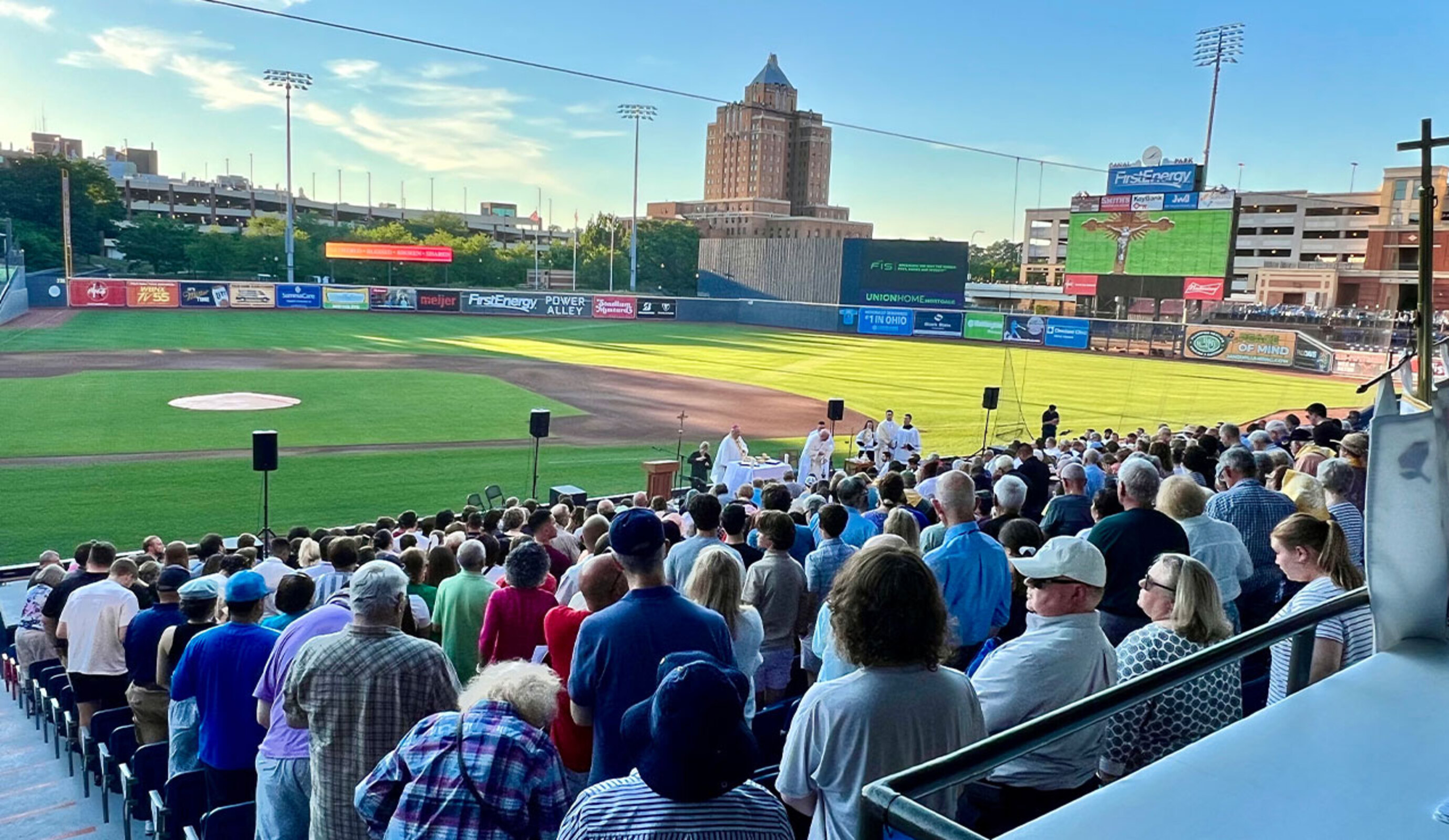 Canal Park Stadium in downtown Akron was filled with more than 900 people on June 24, who gathered for a special ballpark Mass at the home of the Akron Rubber Ducks.