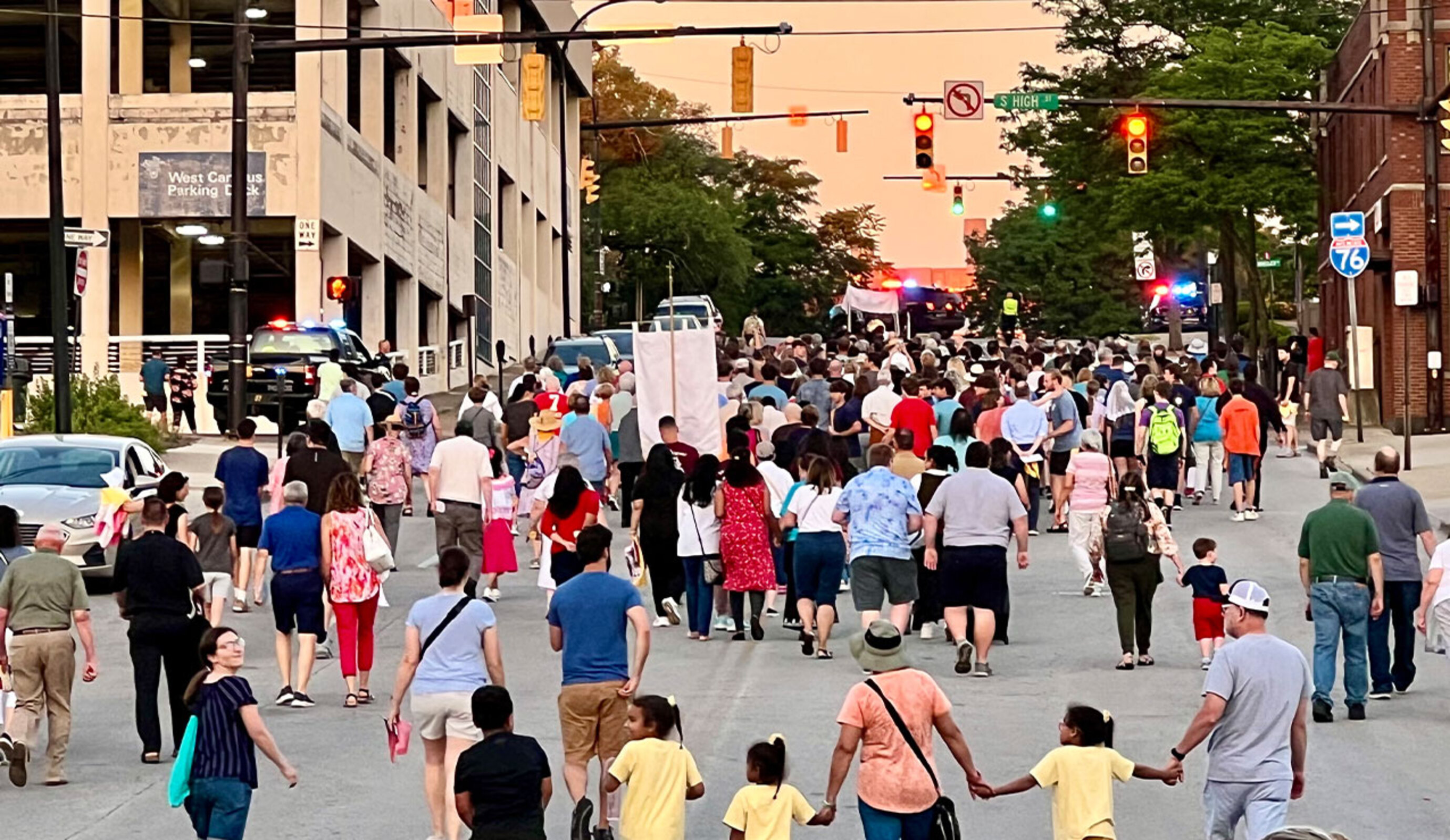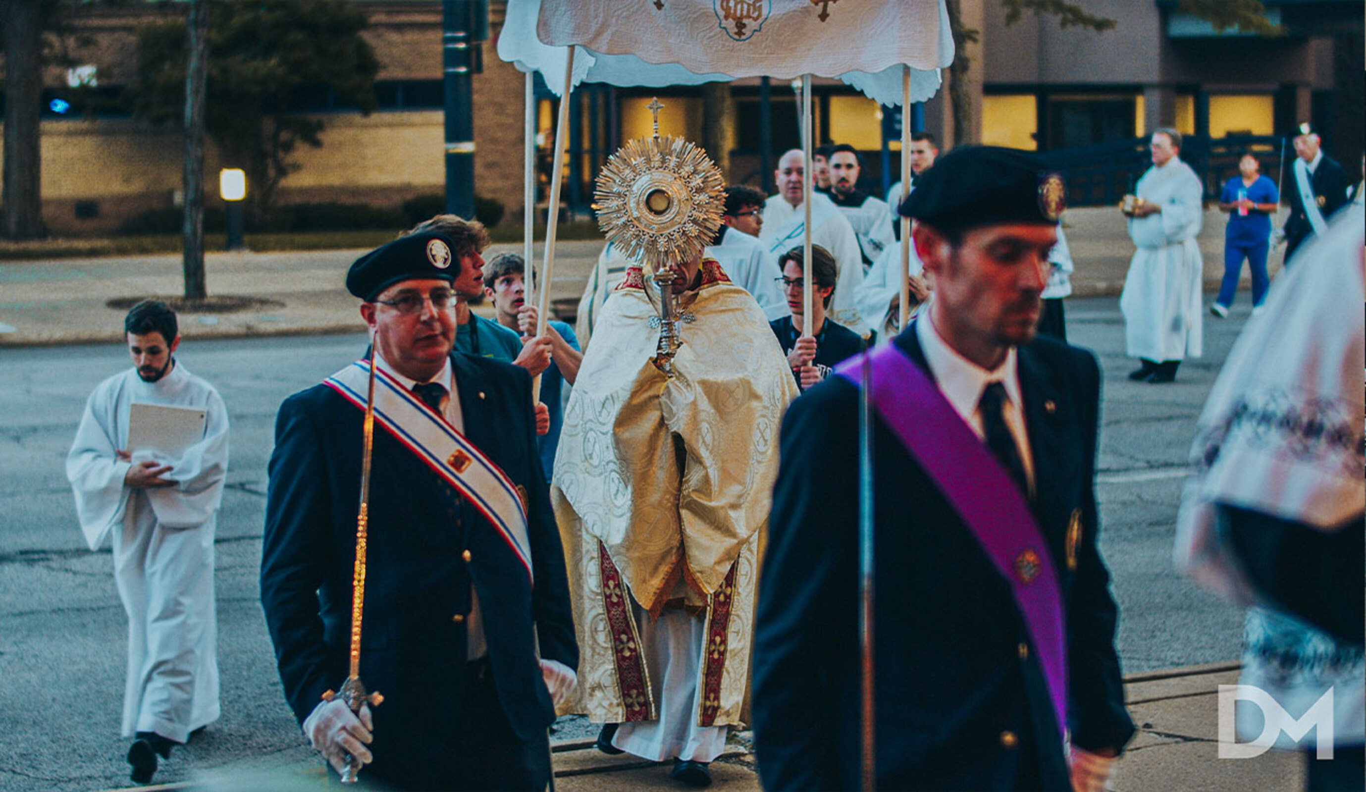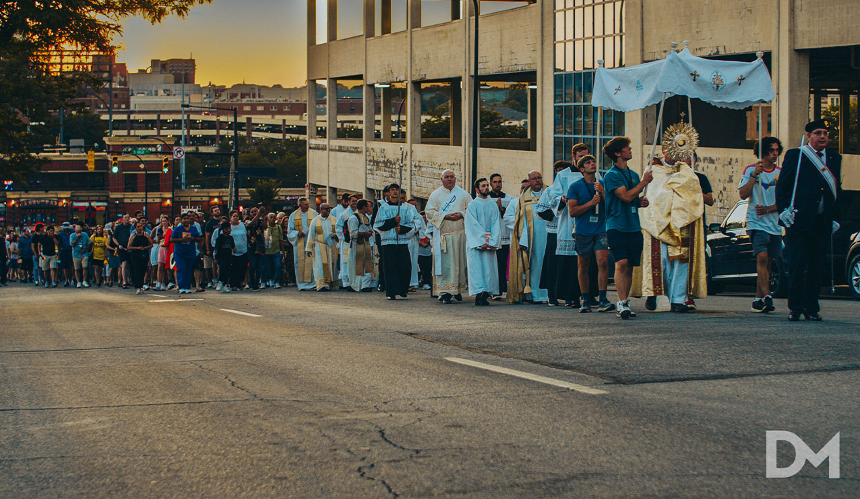 Following the Mass, hundreds participated in a Eucharistic procession from the ballpark to nearby St. Bernard Church for a holy hour, also referred to as an XLT, that included adoration with praise and worship music.