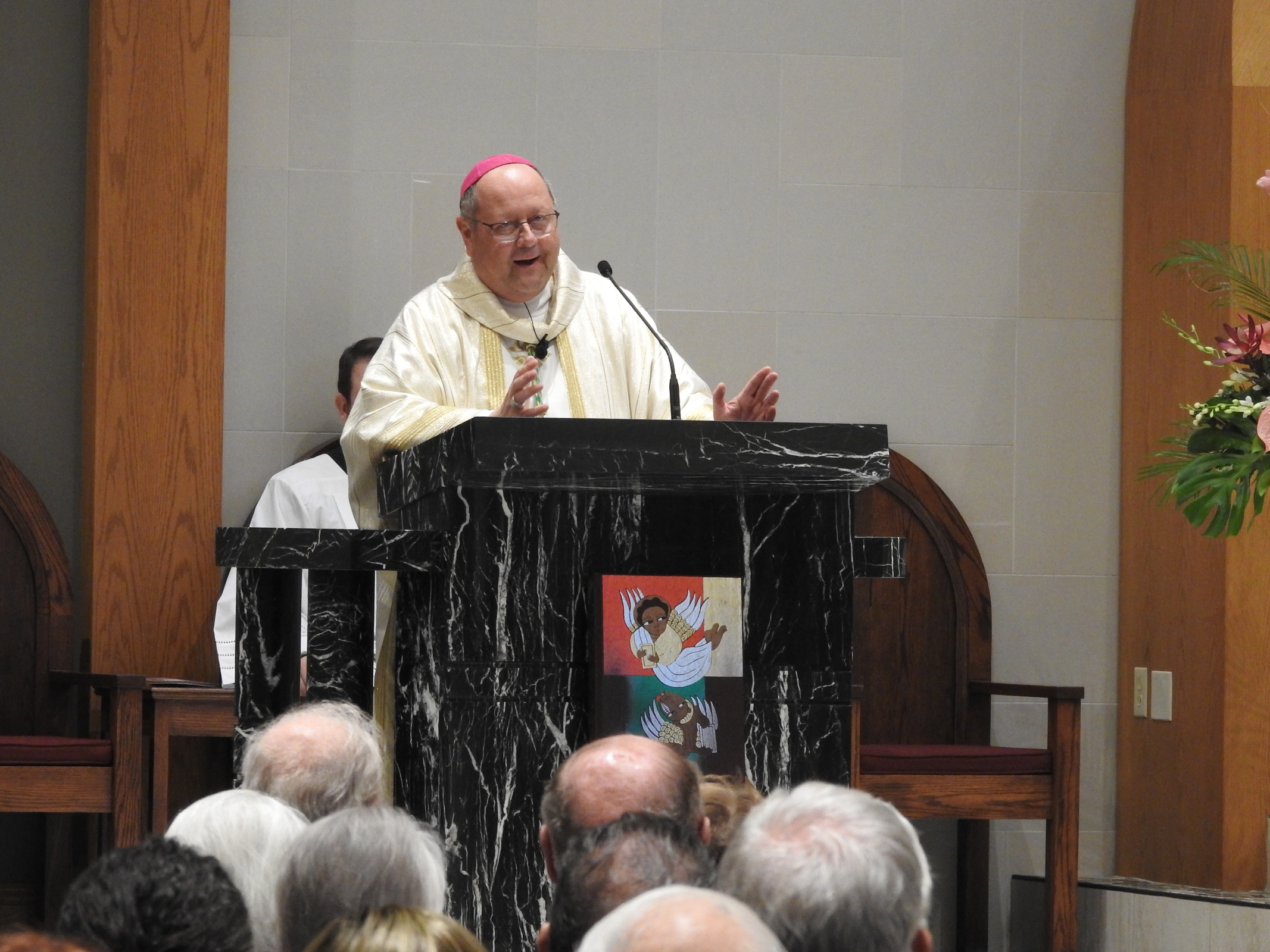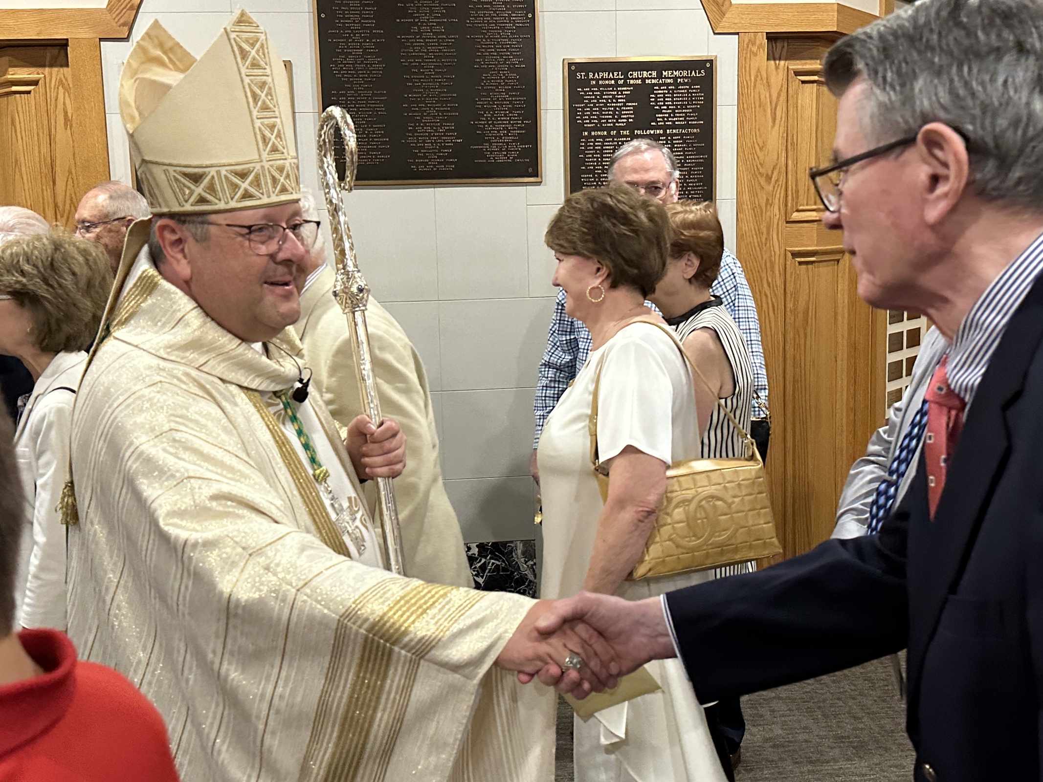 Bishop Malesic called St. Raphael Parish “a family of faith” as he encouraged the faithful not to let the walls of the church become so solid that the word of God doesn’t get out. “We come to this place where God lives to get food for the journey and to take it outside. Take what you receive here and use it as a blessing out there,” he said, gesturing to the outside.