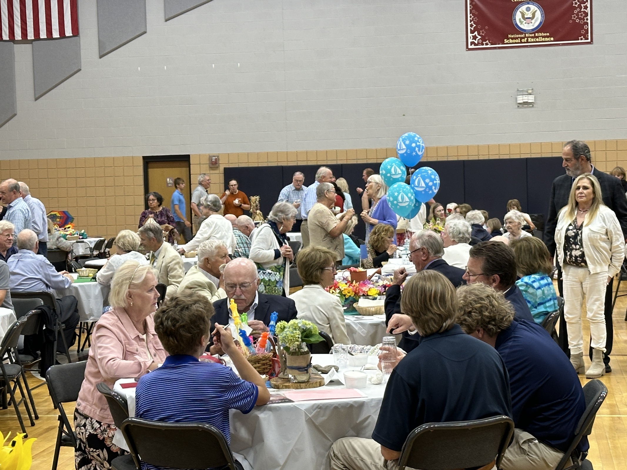 After Mass, the bishop greeted parishioners and all enjoyed an ice cream social with music. Table decorations were provided by various parish ministries.