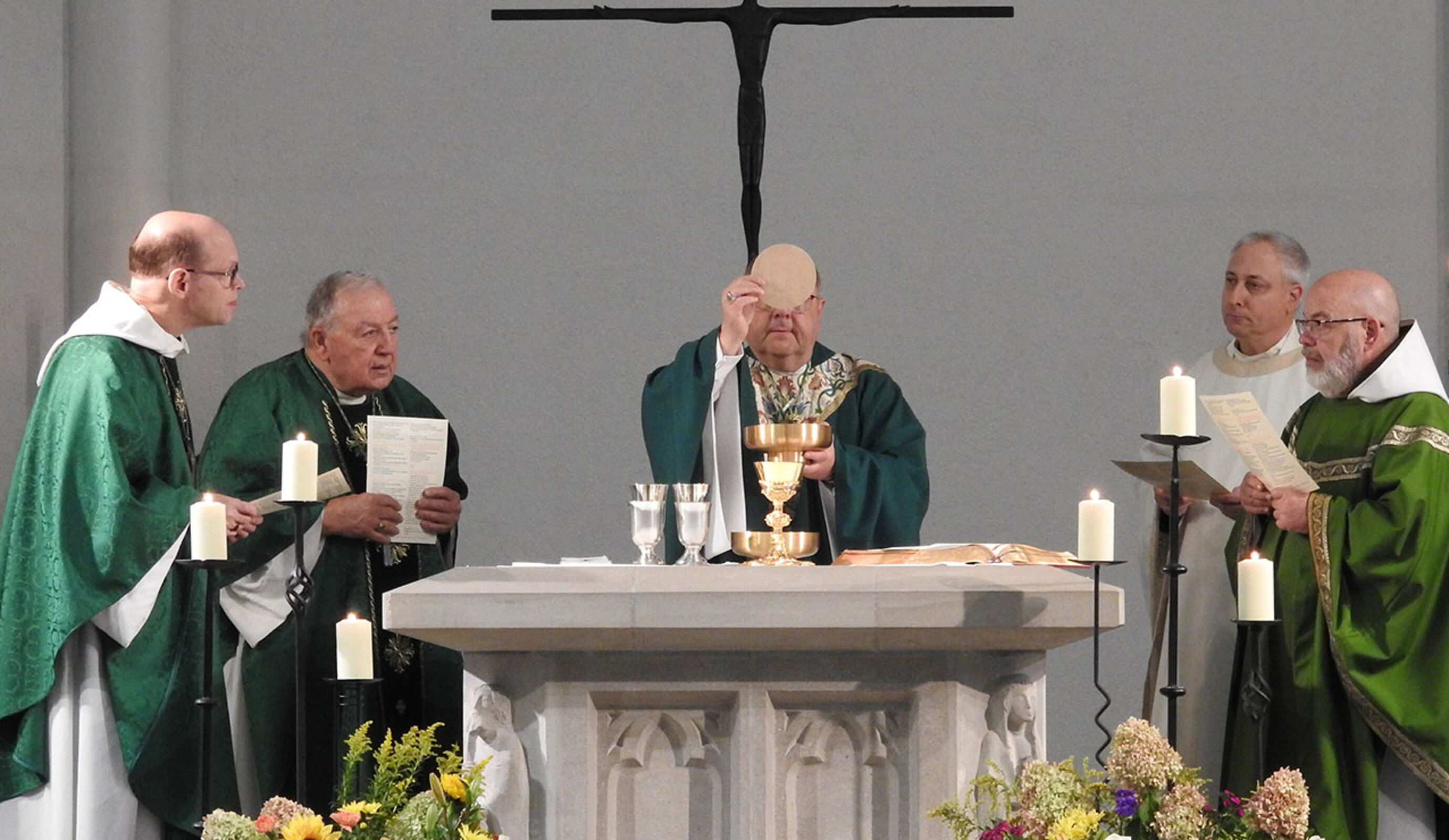Father Phil Bernier, OFM Cap, St. Peter pastor, welcomed the sisters for a liturgy of thanksgiving on Sept. 8. Bishop Edward Malesic celebrated the Mass with Father Bernier, Auxiliary Bishop emeritus Roger Gries OSB, Abbot Gary Hoover, OSB, and Father Michael Brunovsky, OSB as concelebrants.