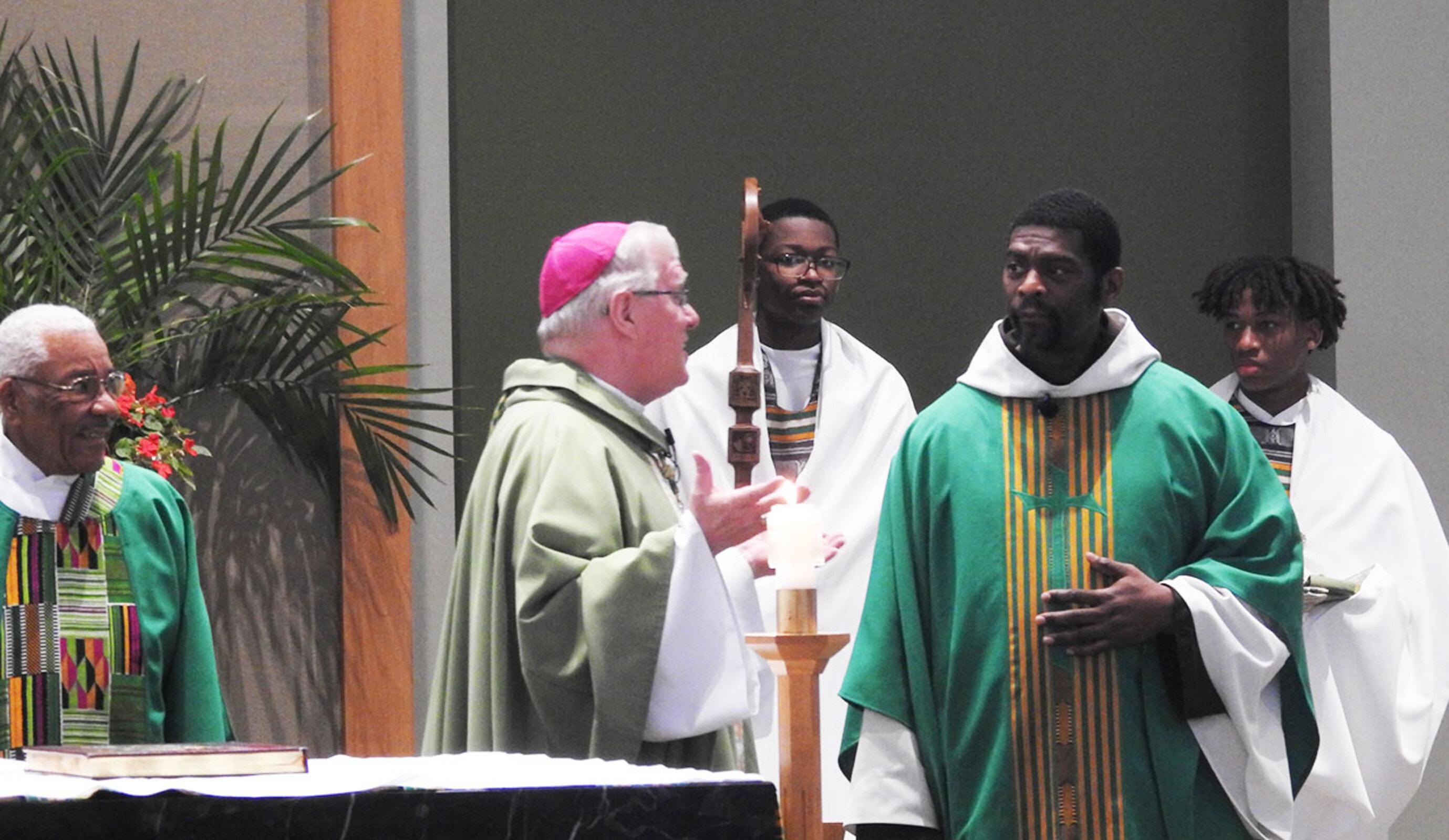 The bishop told the congregation that Bishop Malesic gave them a gift in Father Watson. “He will stay with you as long as God – and the bishop – allow it. Thank you, Father James, for answering God’s call and the bishop’s call to take on this special ministry.”