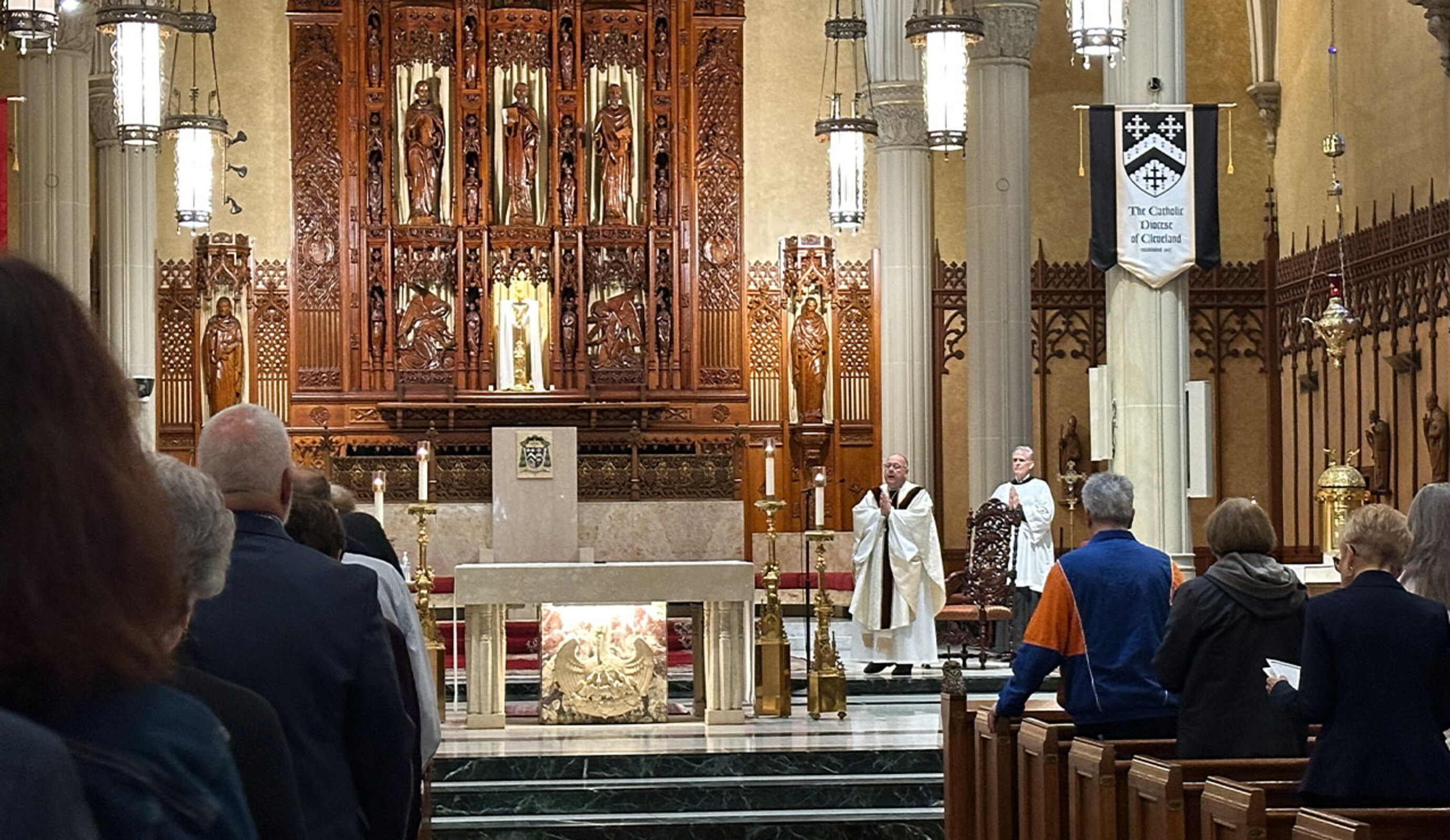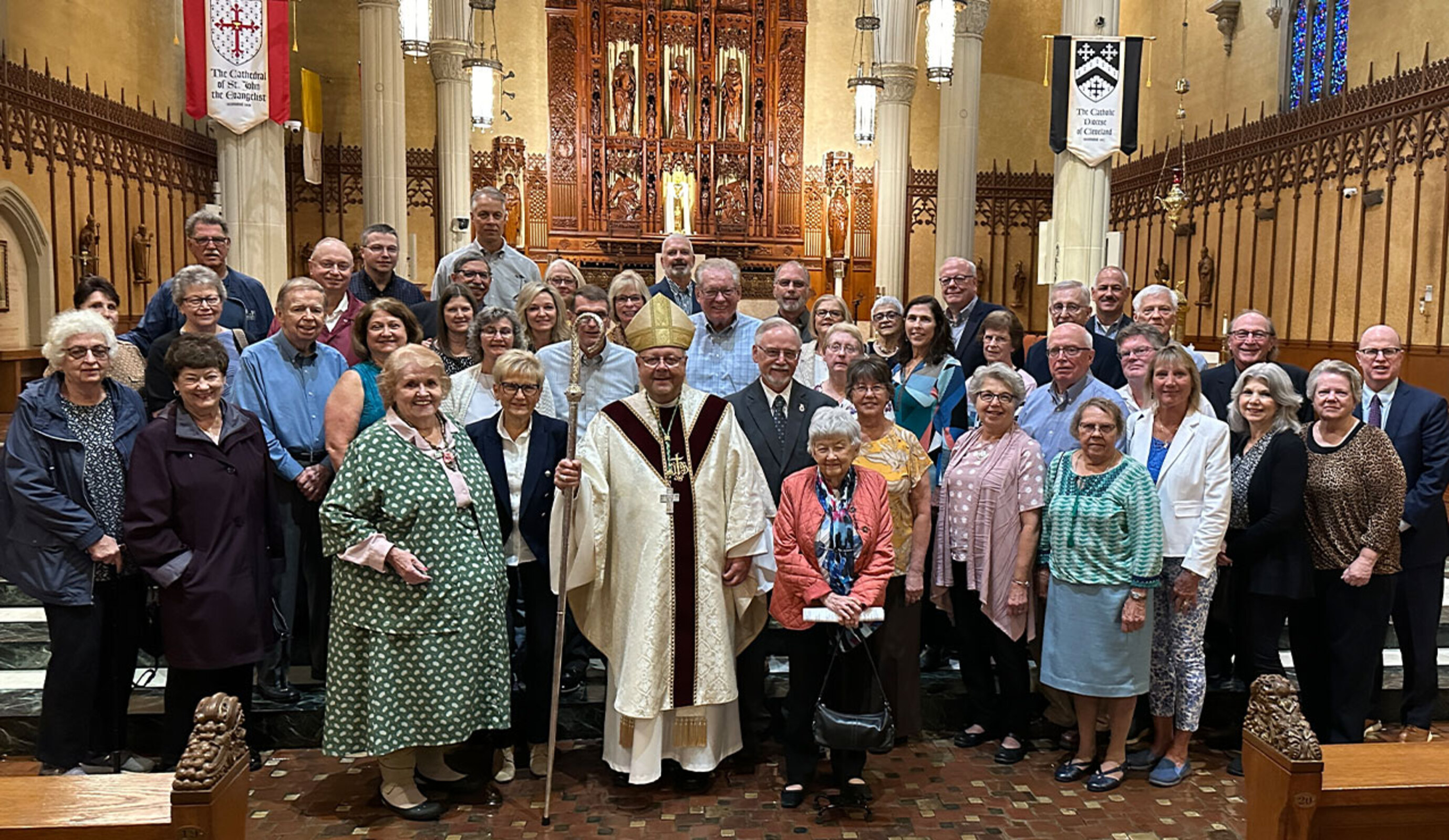 Members of the Faithful Apostles, a group of faithful who have donated to Catholic Charities, Diocese of Cleveland, for a dozen or more years, were recognized at the noon Mass Sept. 30 in the Cathedral of St. John the Evangelist. The group is organized by the Catholic Community Foundation, which supports the mission of the Diocese of Cleveland to provide support for the spiritual, educational and charitable needs of people throughout Northeast Ohio.