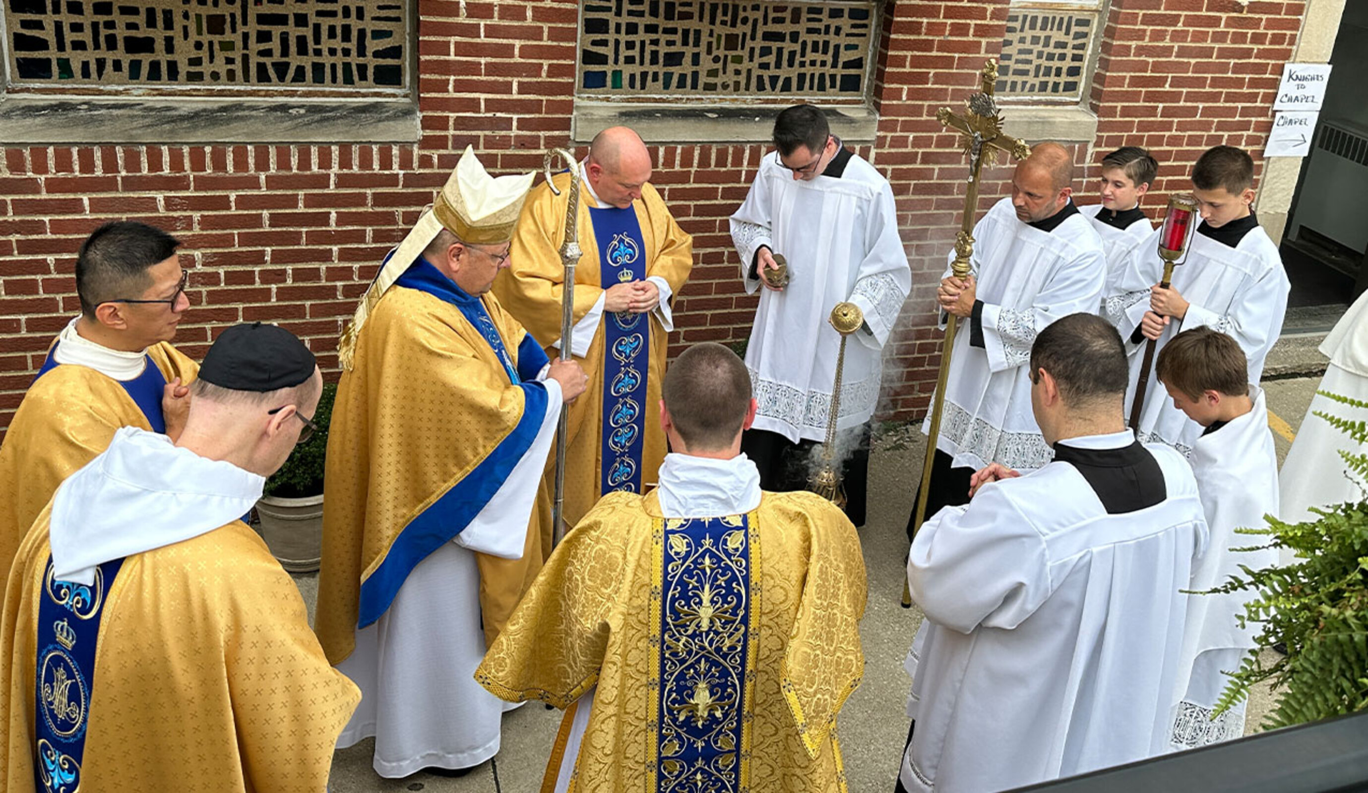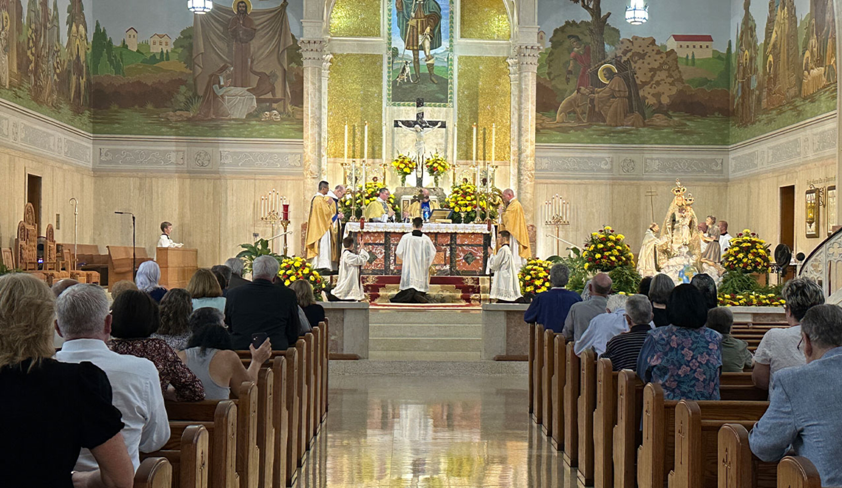 The crowning took place during the Sept. 28 vigil Mass, celebrated by Bishop Edward Malesic. Concelebrants included Father Mayer, Father James Chia, O. de M., parochial vicar, and Abbot Gary Hoover, OSB. Brother Matthew Levis, O. de M, pastoral assistant, helped with the liturgy.