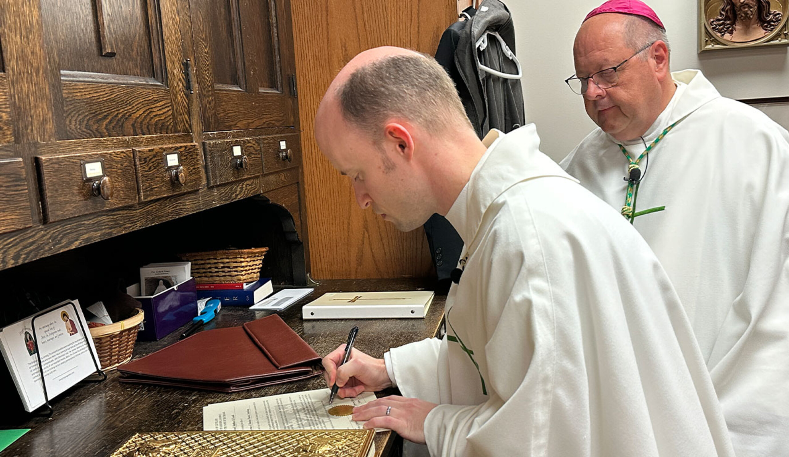 Before Mass, Father Cortnik, who was ordained to the priesthood in 2018, and the bishop signed the documents making his new appointment official. During the liturgy, he led the faithful in a profession of faith.