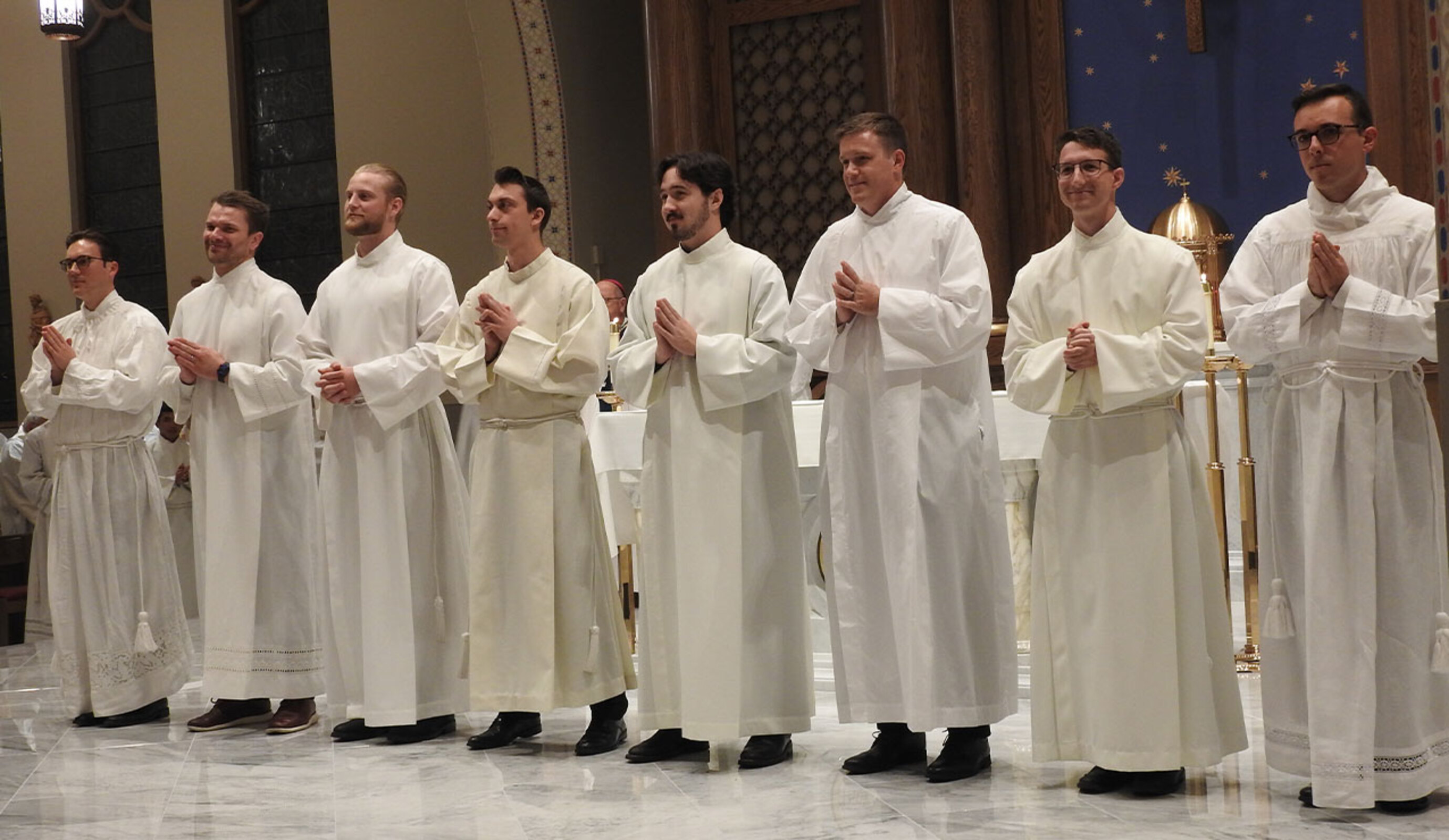 Men from the permanent diaconate formation program joined Saint Mary seminarians at the liturgy. In the past, the seminarians and diaconate programs had separate institution liturgies,