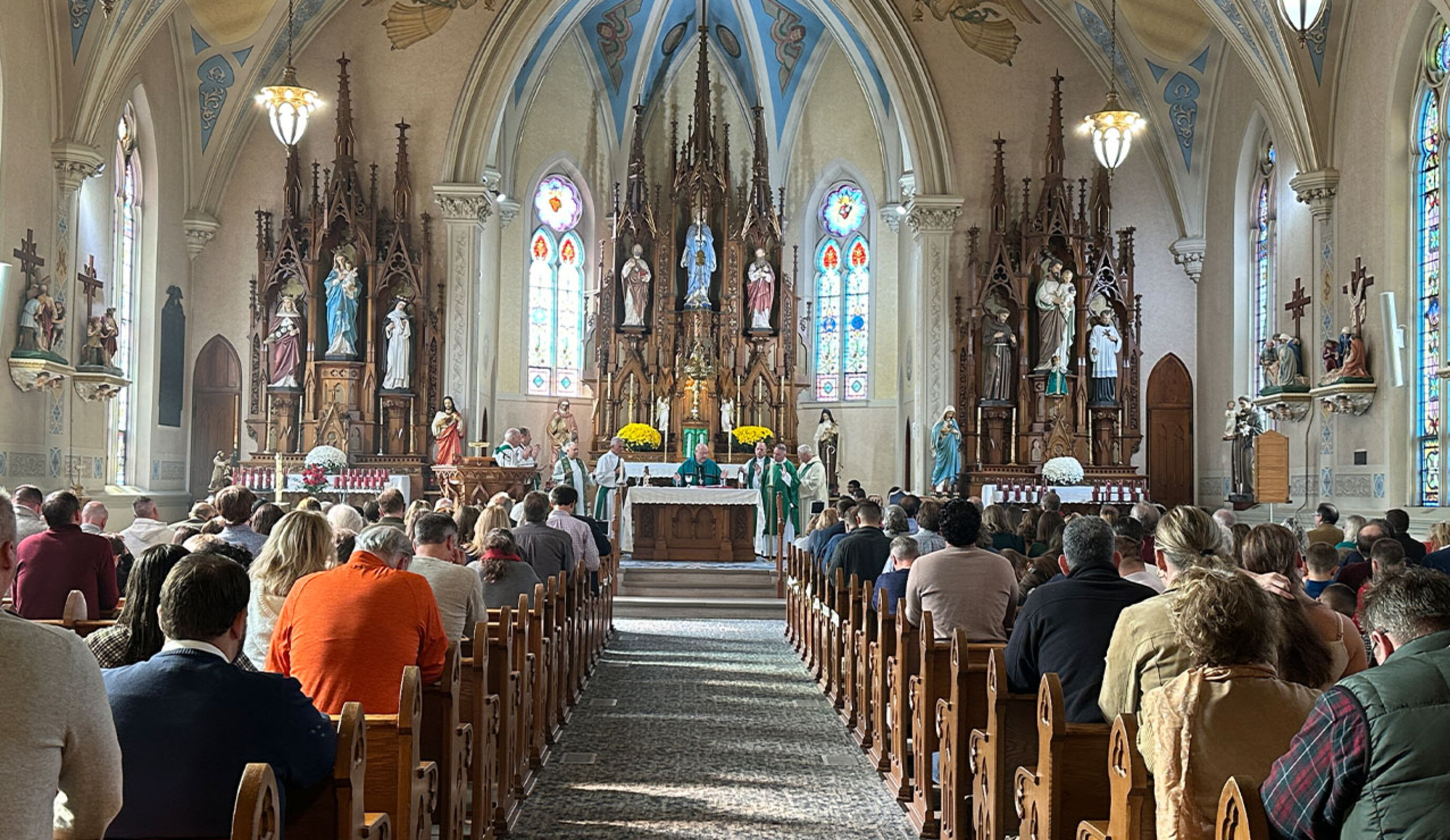 St. Mary was established in 1841 – seven years before the Diocese of Cleveland – and was a German parish, Bishop Malesic noted. He pointed out some of the beautiful features in the church, including the statues and carved wood. He encouraged the faithful to make their hearts beautiful to God.