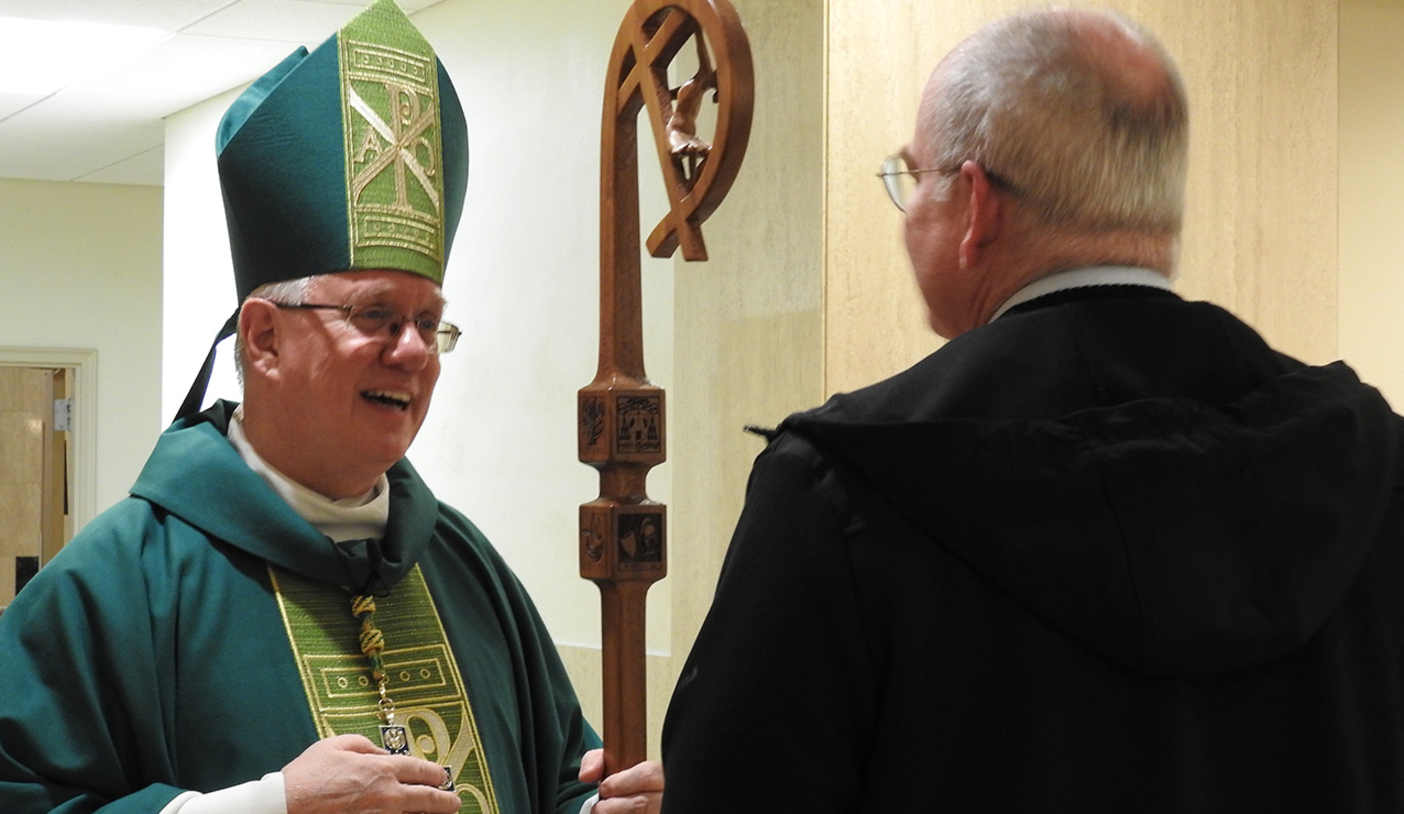 Auxiliary Bishop Michael Woost traveled to Regina Health Center in Richfield to celebrate a Mass in recognition of donors to the facility.