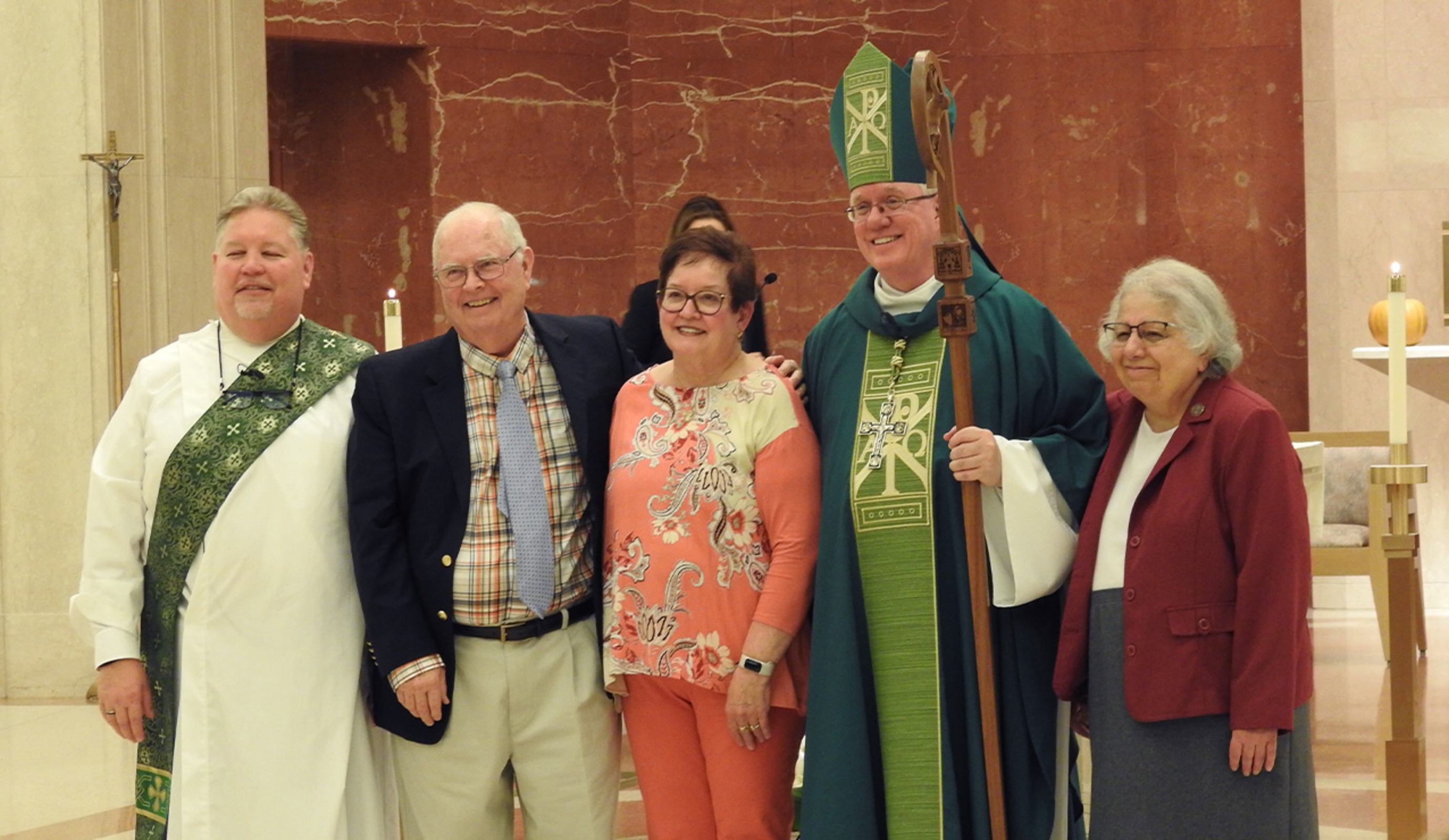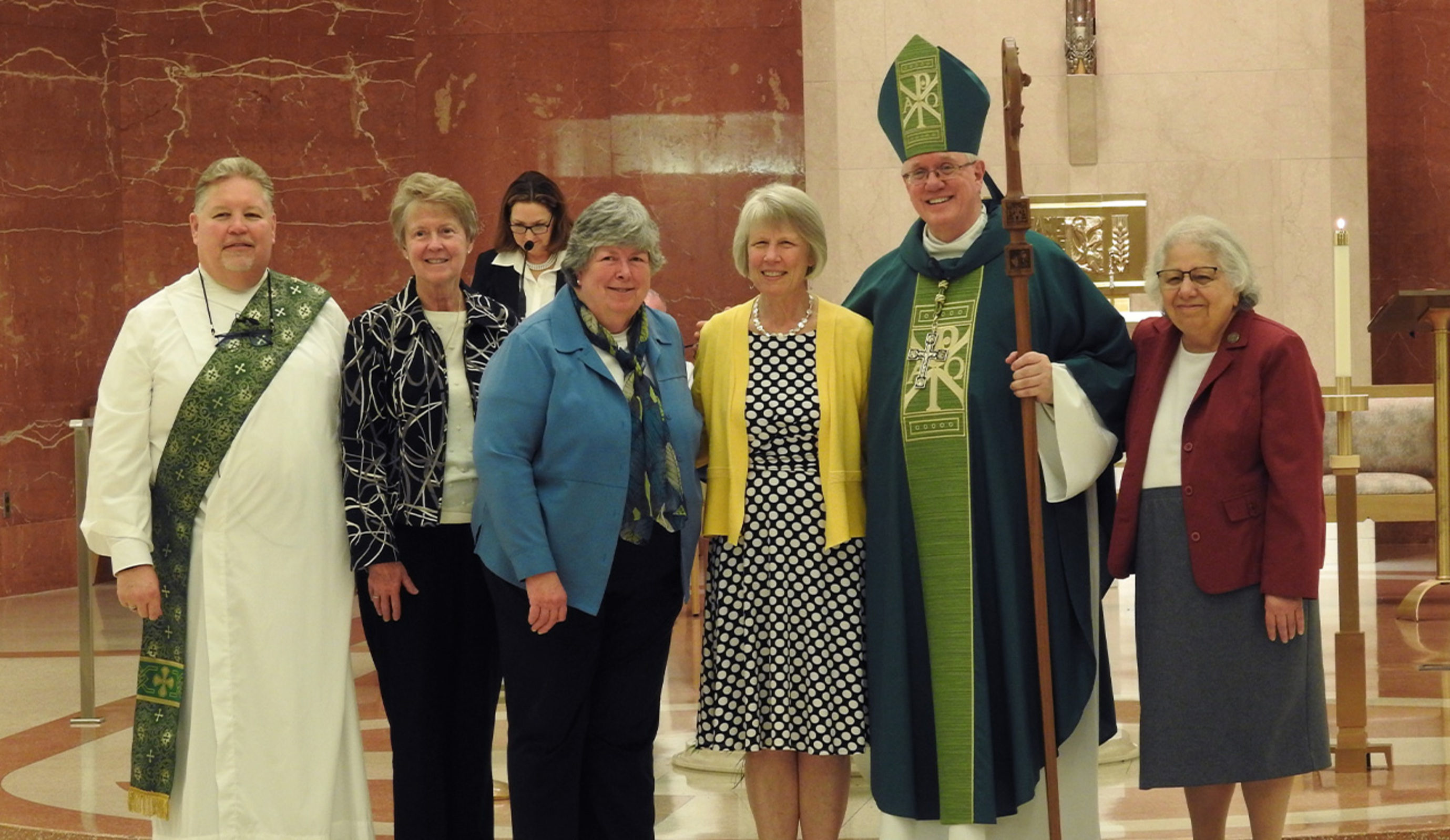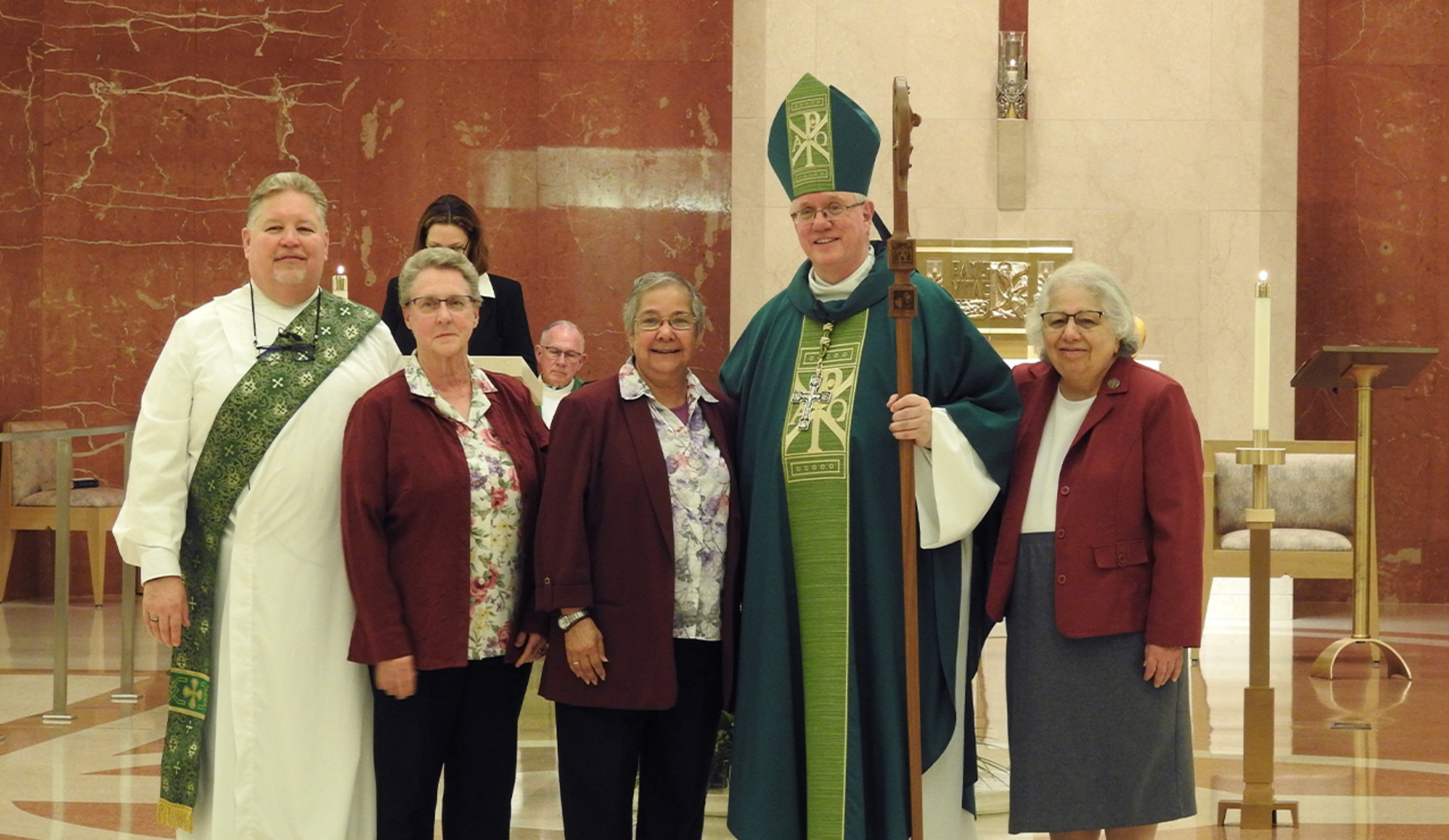 The honorees were recognized after Mass and posed for photos with the bishop, Sister Karam and Deacon Yantek.