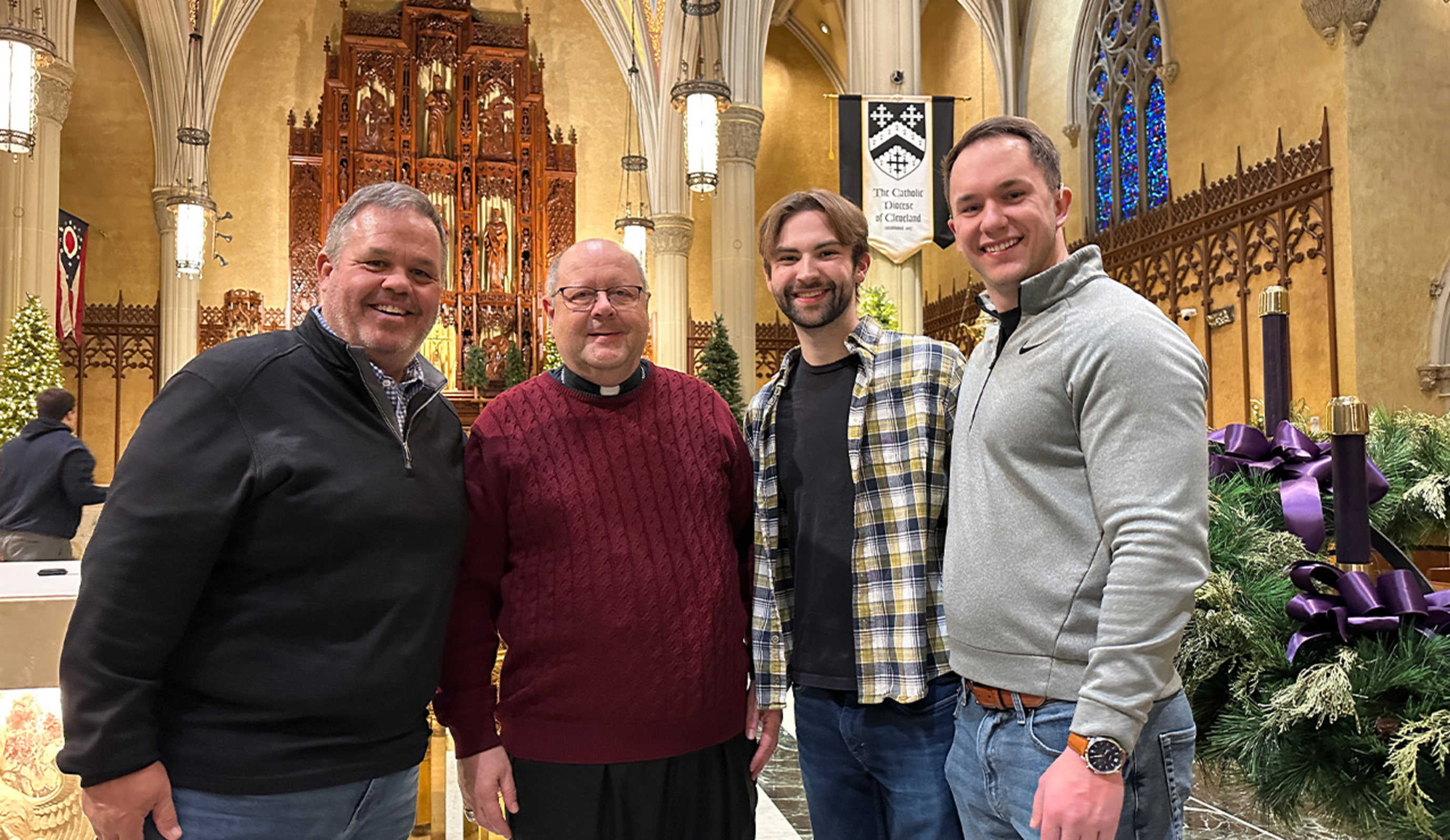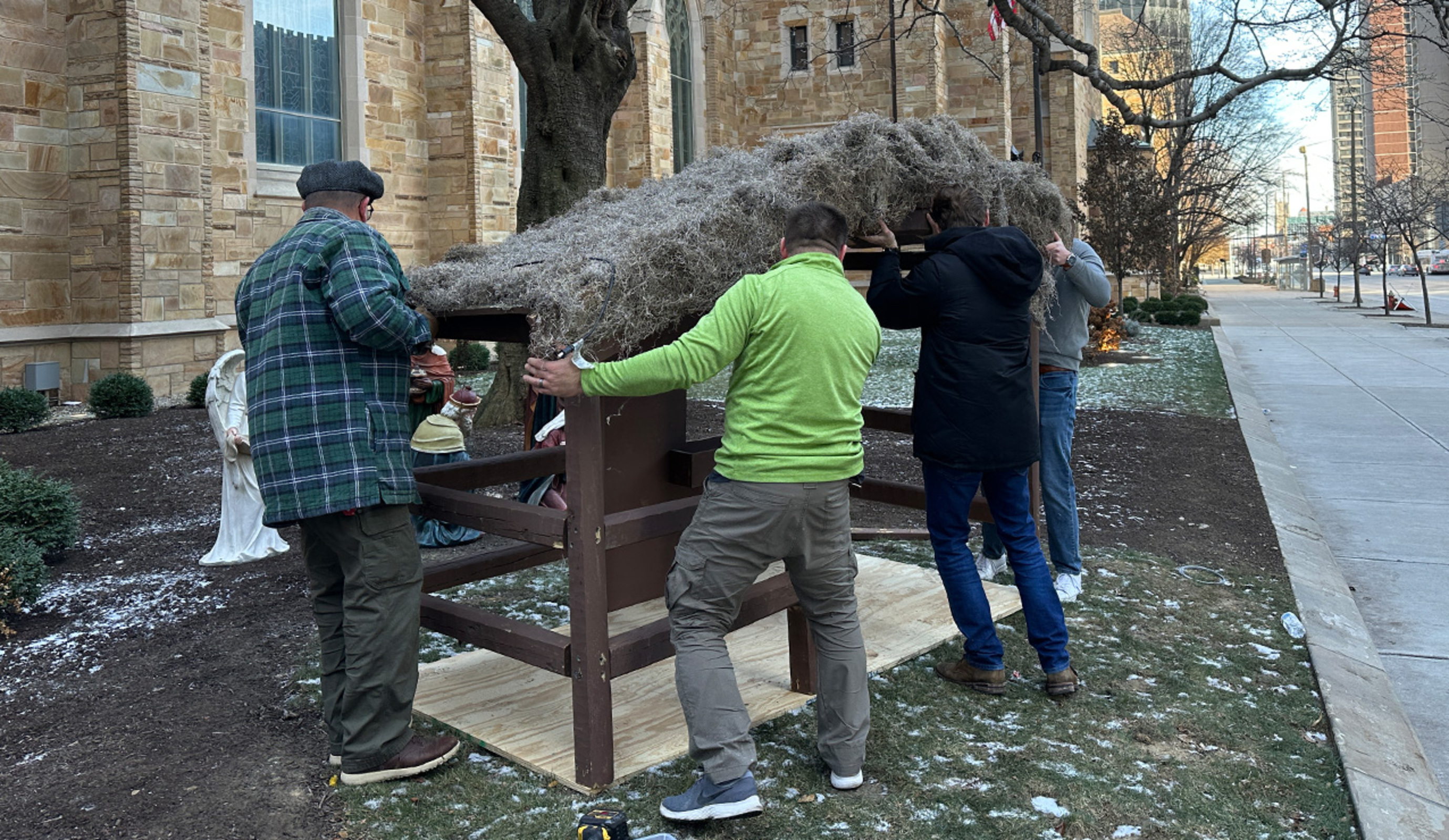 Another group helped assemble the historic creche on the Superior Avenue side of the cathedral. The creche, a gift from Bishop Joseph Schrembs, the fifth bishop of Cleveland who served 1921-1945, was blessed during a Mass on Christmas Day in 1928. The bishop ordered it from a craftsman in his native Germany. St. Francis of Assisi is credited with originating the Christmas creche in 1223.