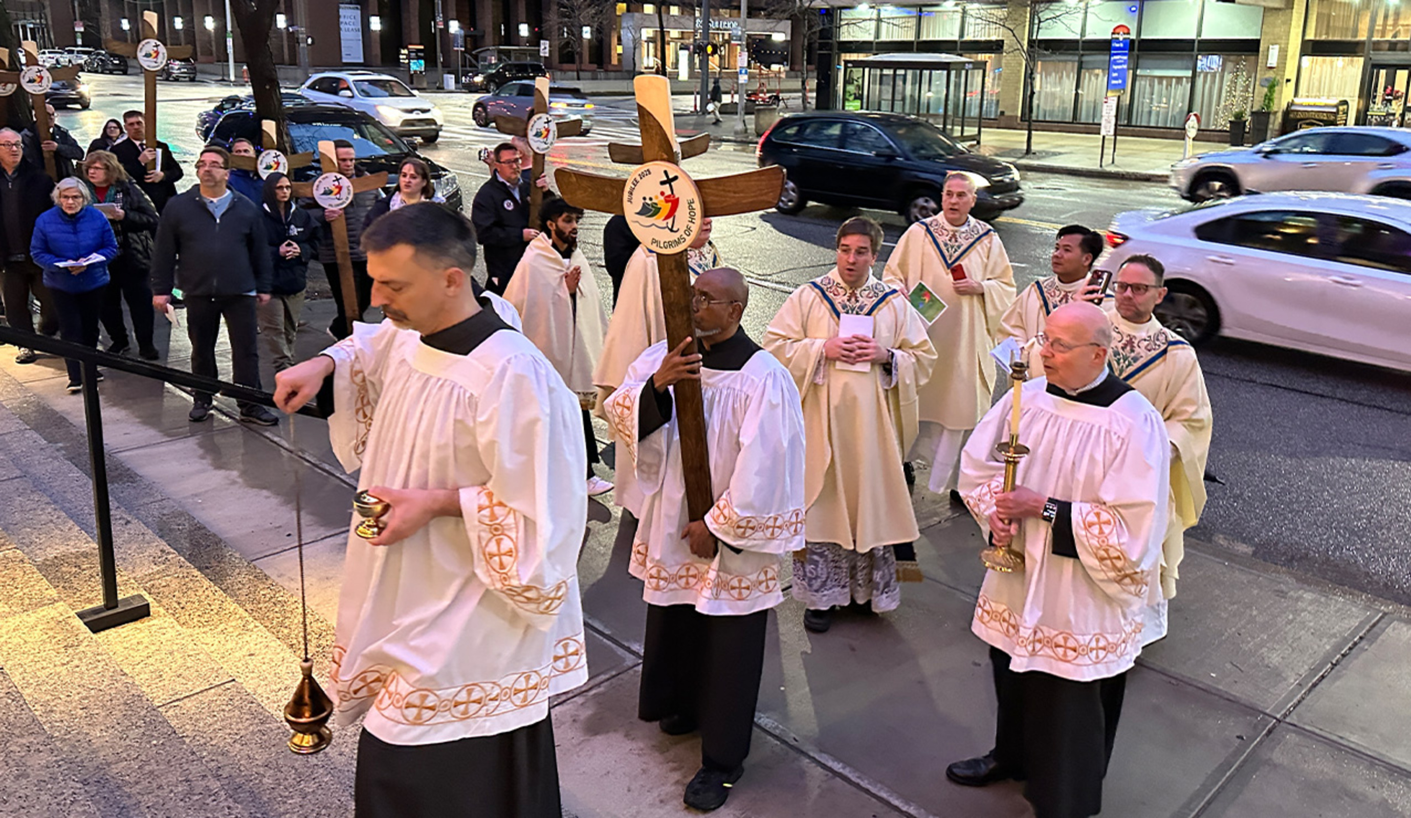The opening prayer service included song, a Gospel reading and a brief homily before those assembled began processing along Superior Avenue to the cathedral, about eight blocks west. Leading the procession were members of the clergy and representatives of the eight parishes and three shrines that Bishop Malesic designated as sacred sites for the jubilee year.