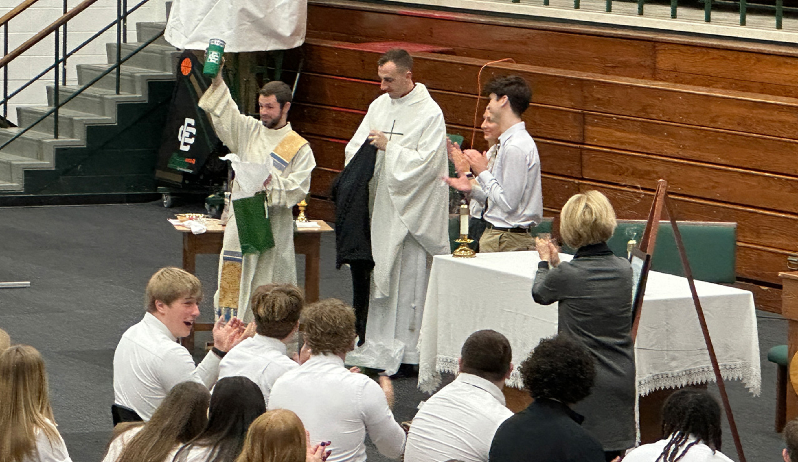 After Mass, Father Garris and Deacon Lindholm were presented with some EC swag.