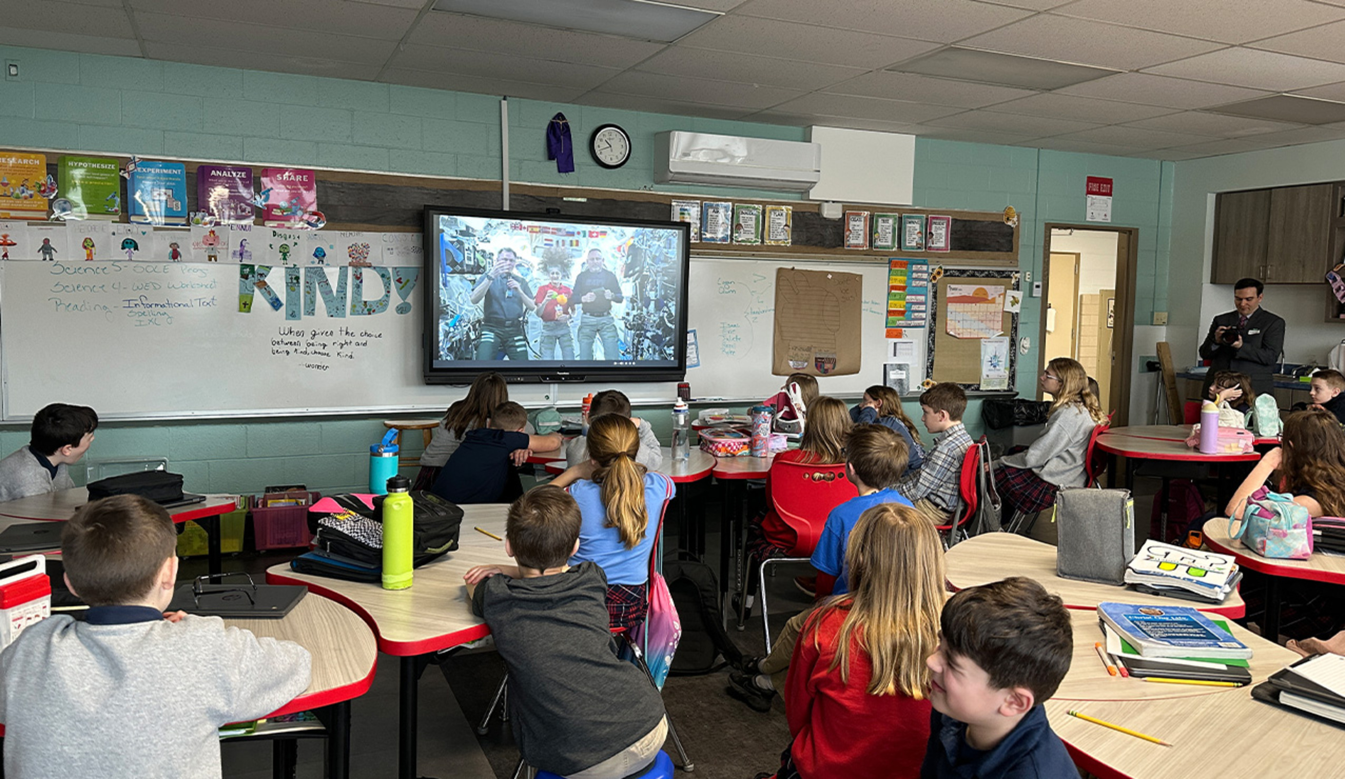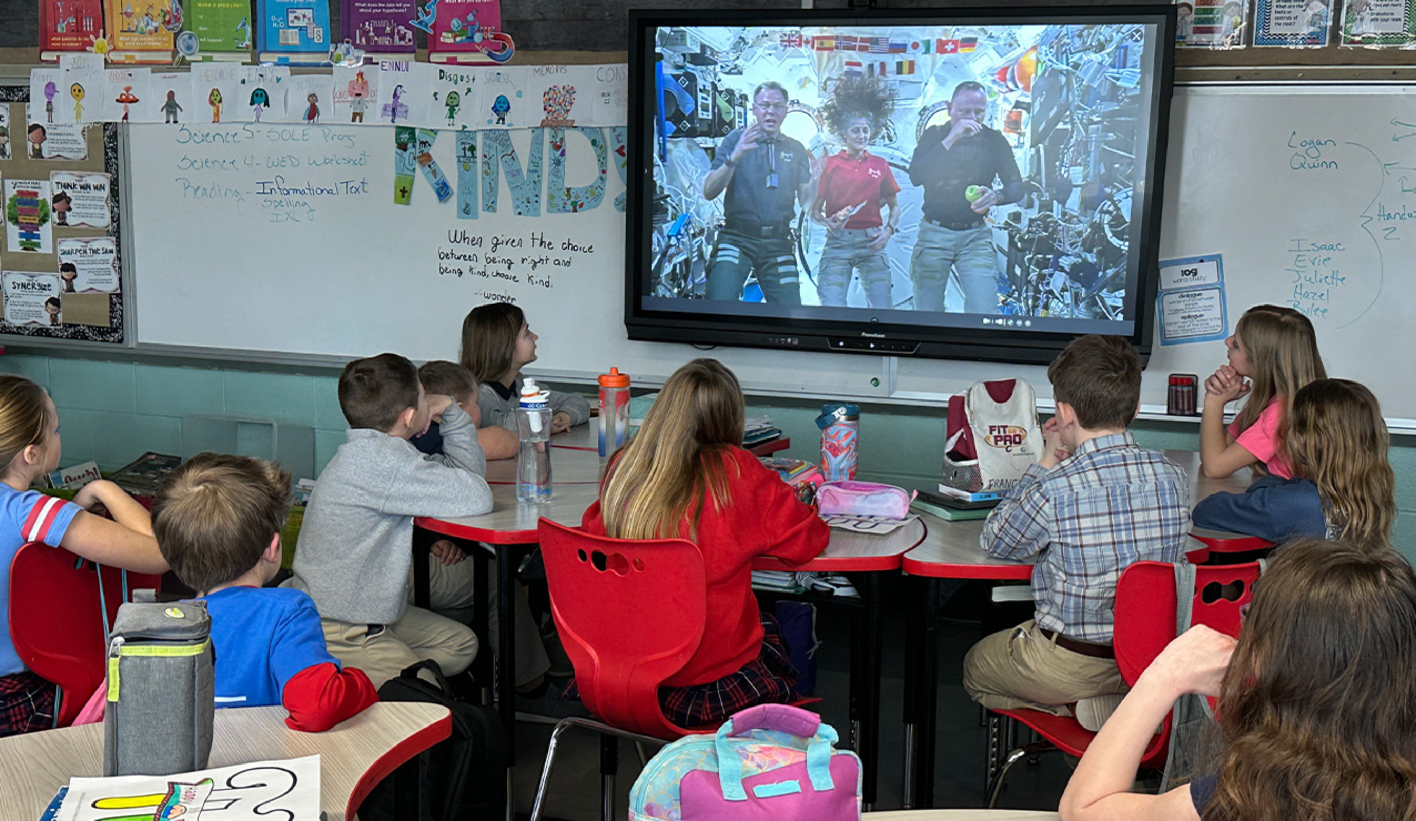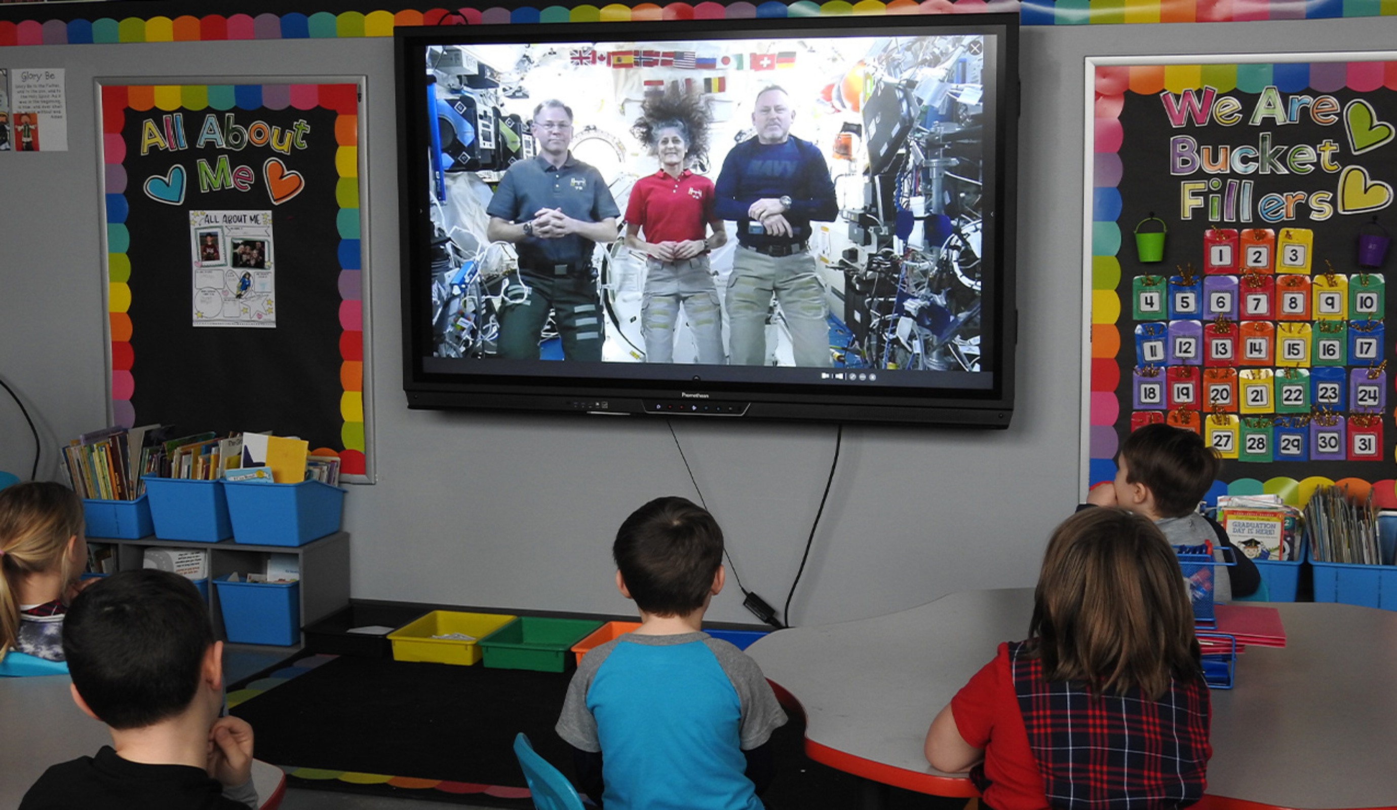 The live broadcast was shared through NASA’s live link. Students and others across the state and the world could join the broadcast to hear and learn from the astronauts. St. Ambrose students in grades preschool through eight tuned in on the large screens in their classrooms to watch and listen to fellow students ask questions of the astronauts and to hear their responses.