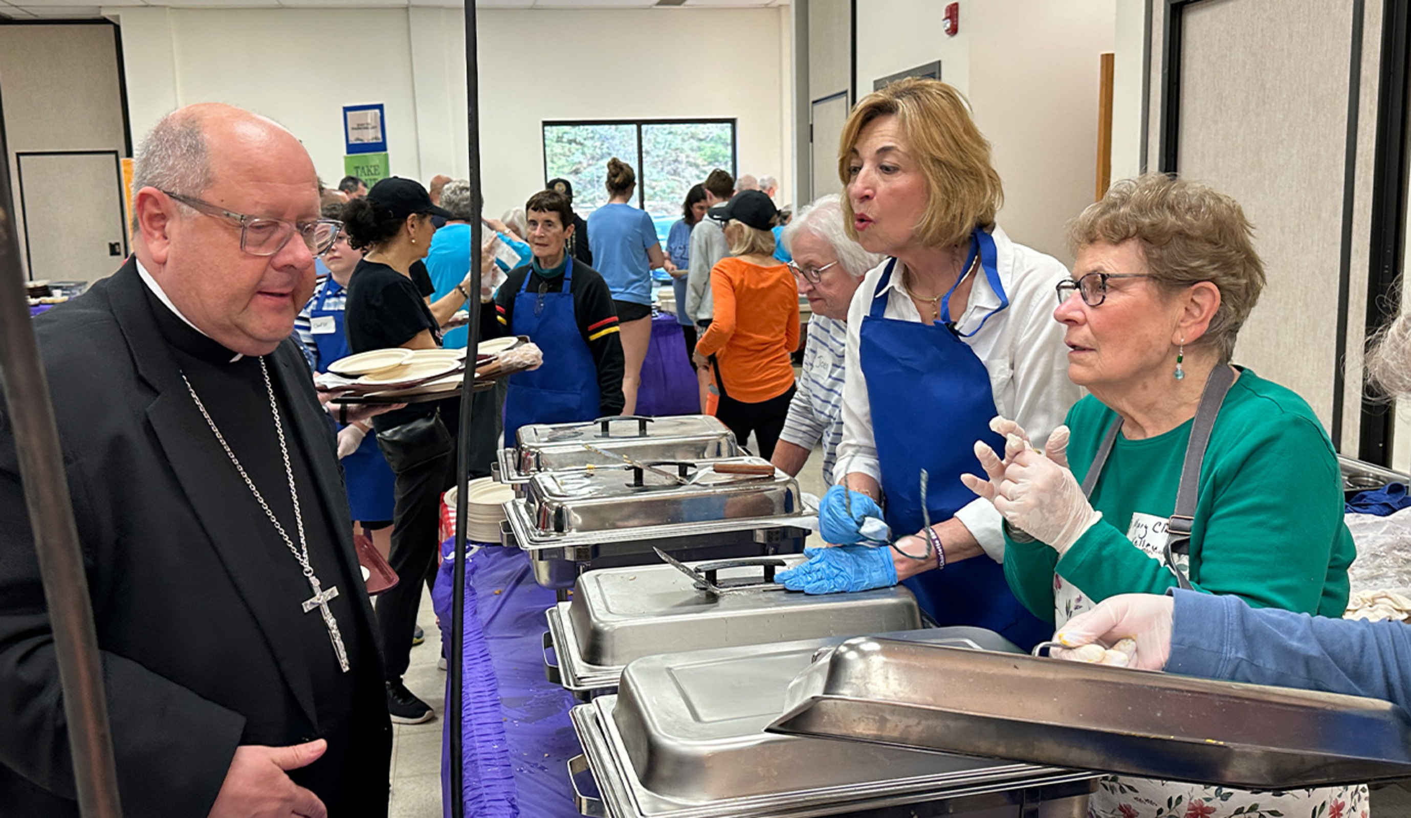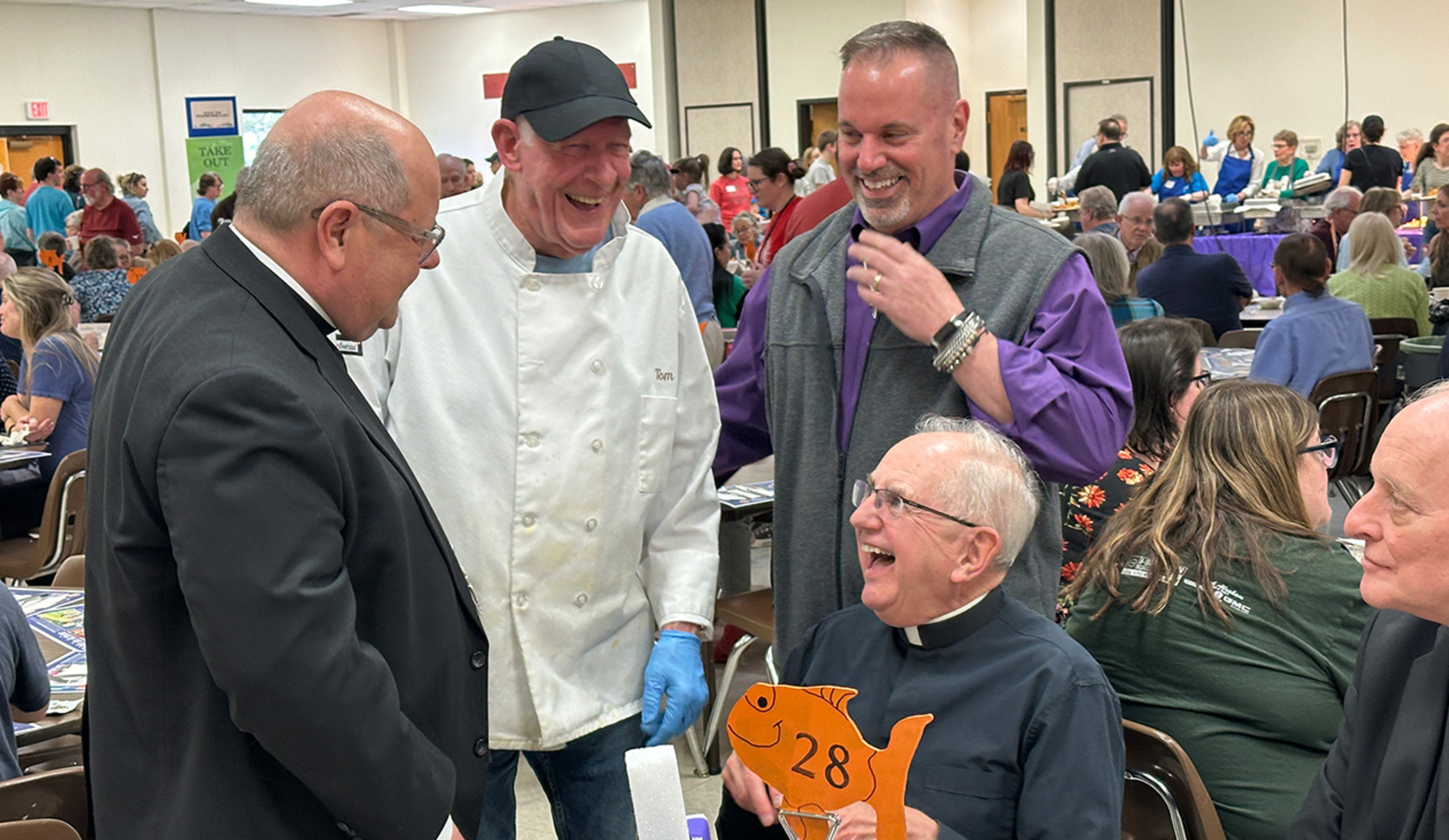 Bishop Edward Malesic resumed his longtime Lenten tradition on March 14 as he visited St. Ladislas Parish in Westlake for a fish fry presented by the Knights of Columbus Council 16373.
