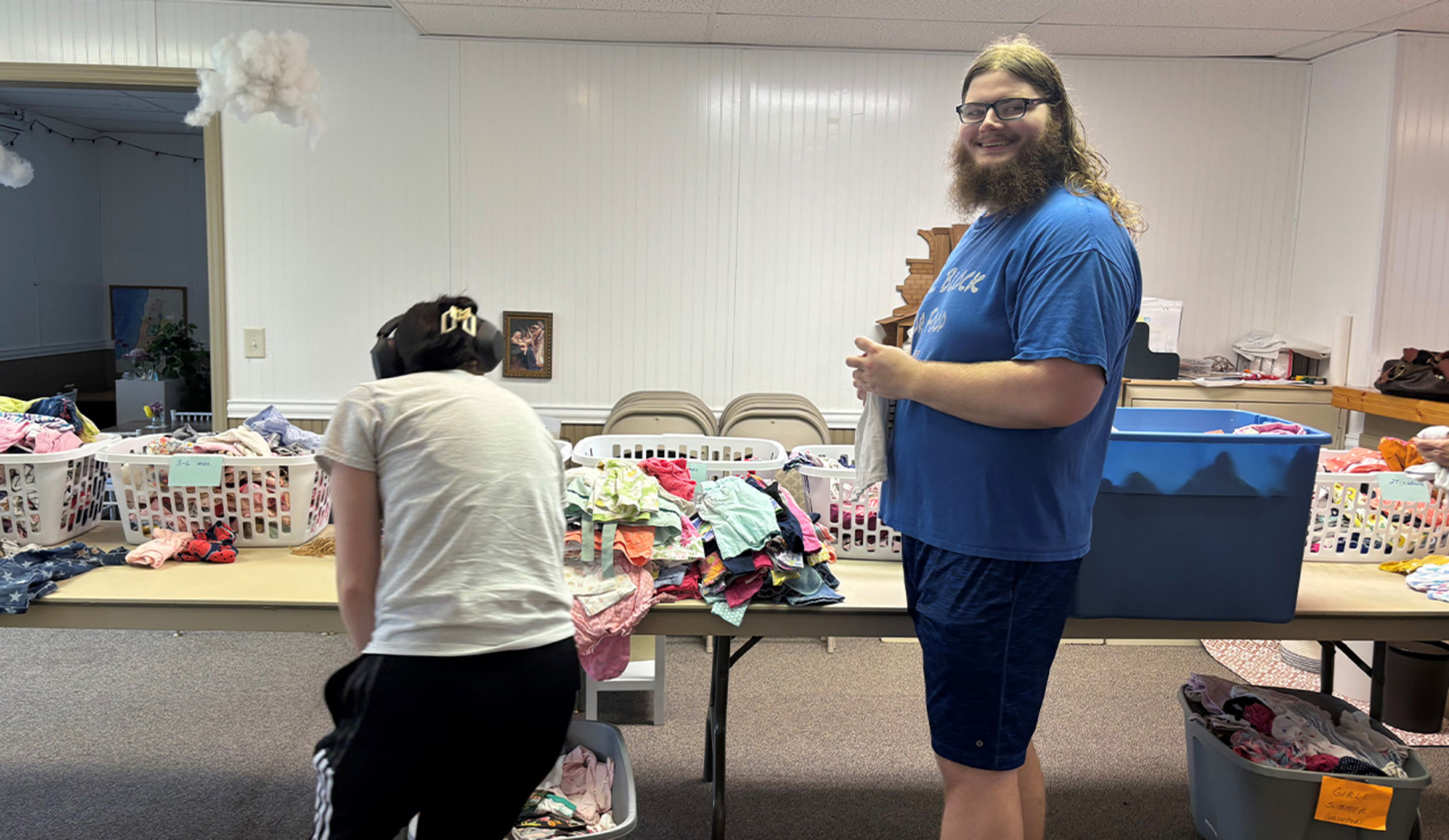 Joann Rymarczyk-Piotrkowski, director of Newman Catholic Campus Ministry, said the College of Wooster and Ashland University collaborated on their servicer project. Students sorted clothing for babies and children for the Gabriel Project, a ministry of St. Mary of the Immaculate Conception Parish in Wooster.