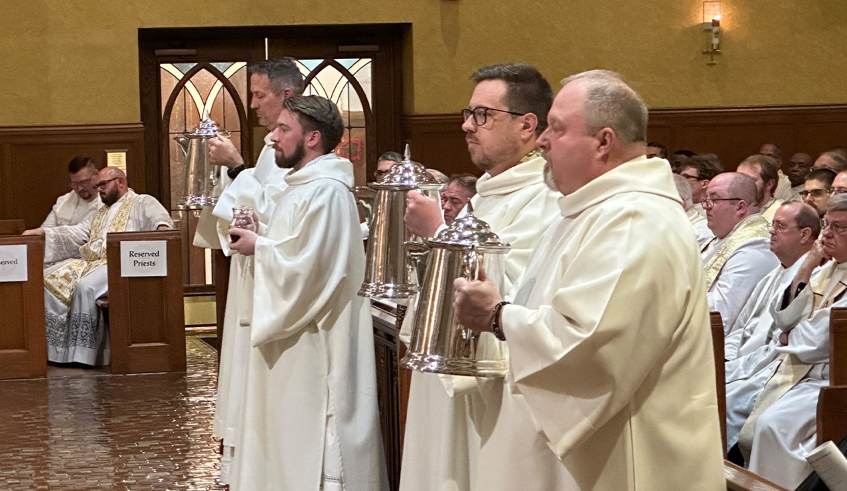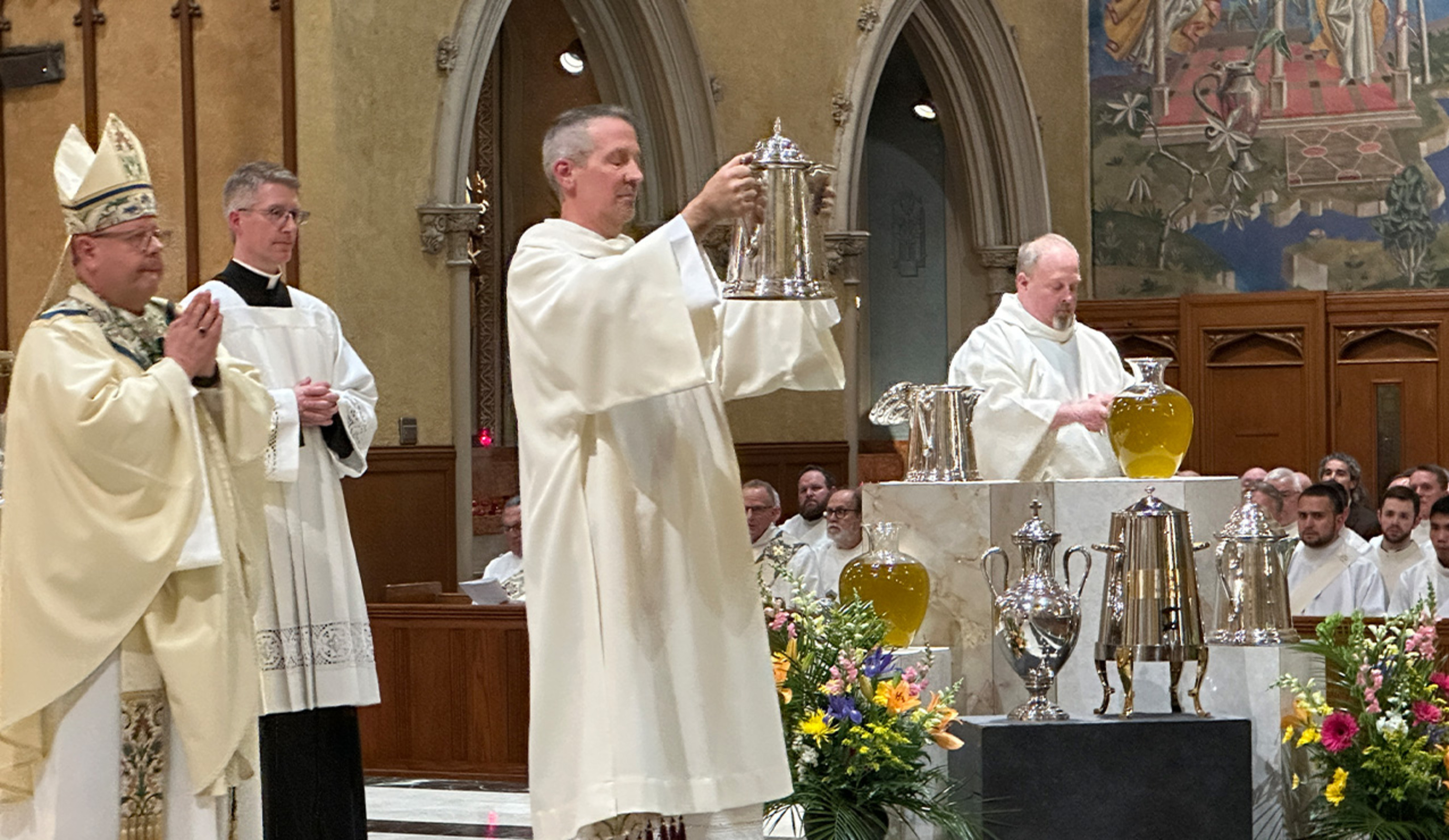 After Mass, seminarians dispensed the sacred oils to representatives of parishes throughout the diocese so they could be used during the year.