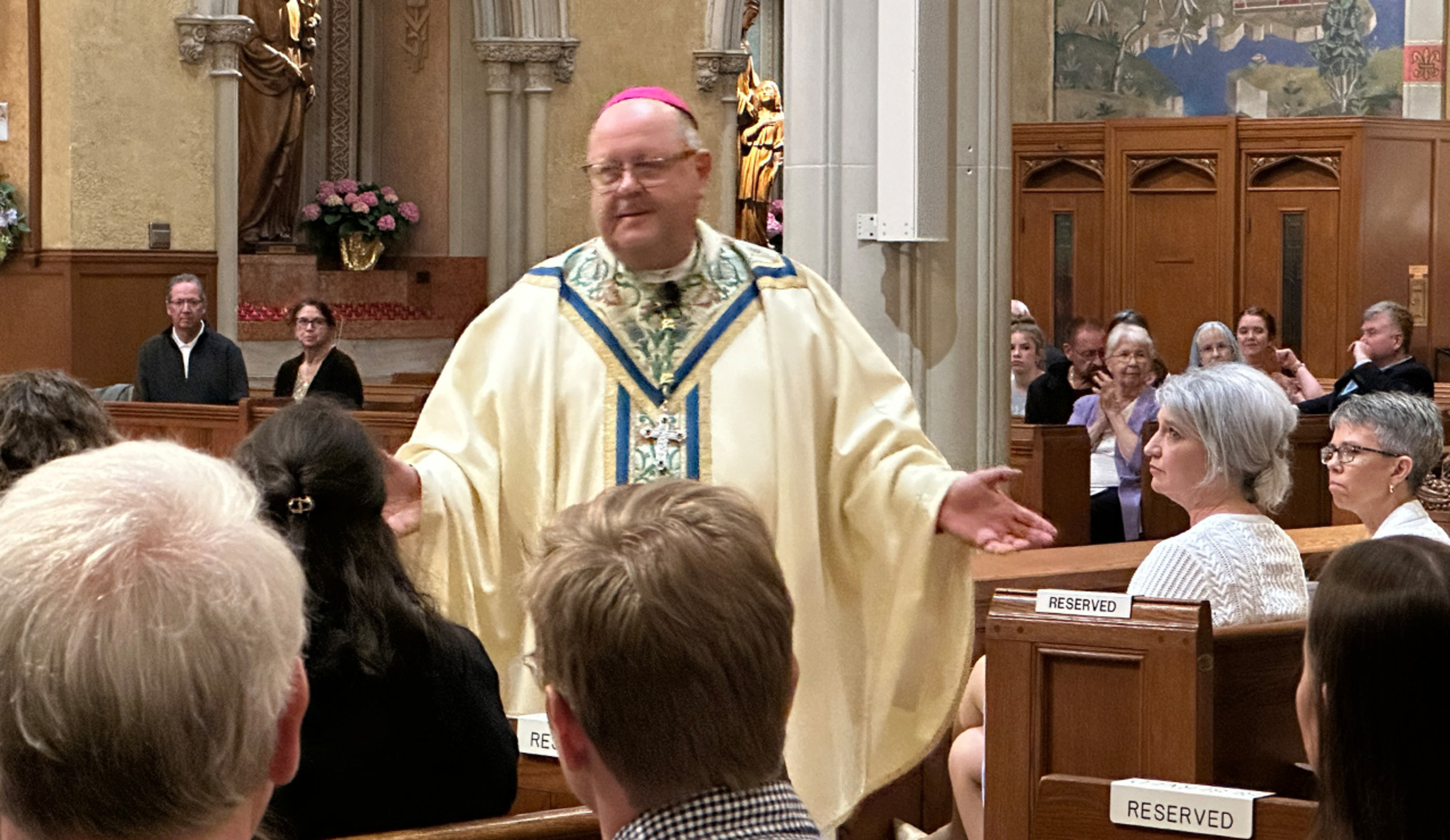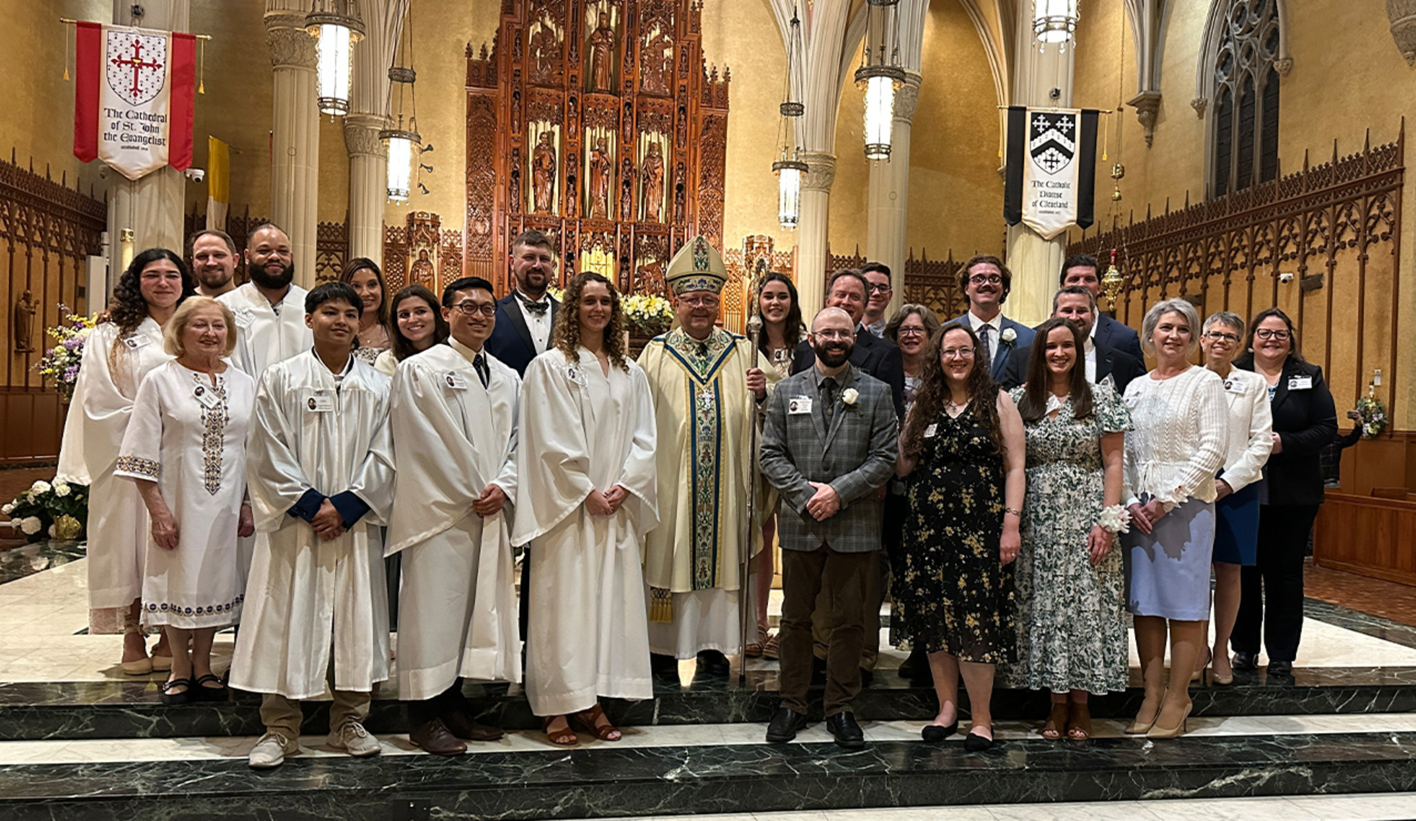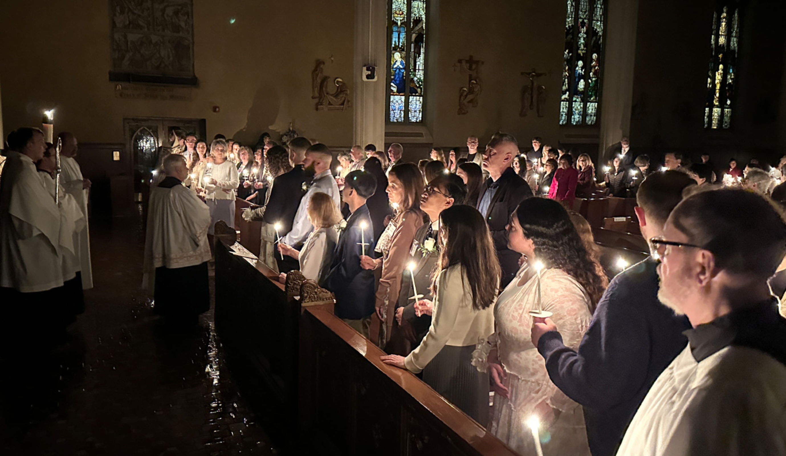 “I can feel the joy of the Church tonight,” Bishop Edward Malesic said to those gathered in the Cathedral of St. John the Evangelist on April 19 for the Easter Vigil.