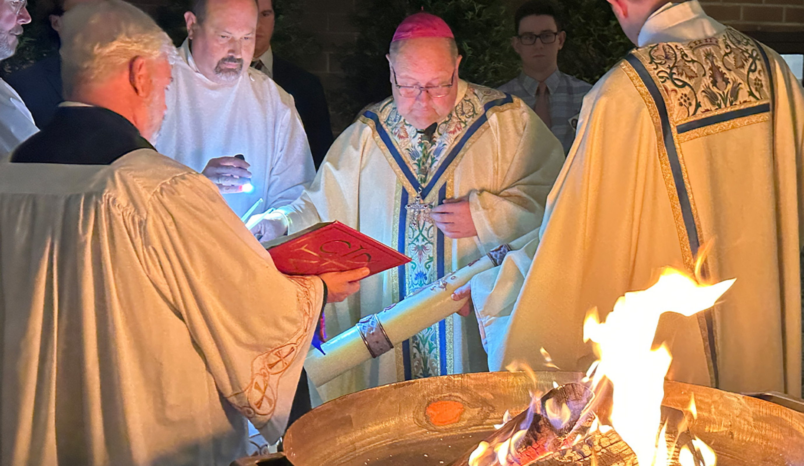 The bishop said Jesus is rising with us once again as the light that darkness cannot overcome. He said the five people who were being baptized during the liturgy and six others who were coming into full communion with the Catholic Church, will be strengthened by the gifts of the Holy Spirit in the sacrament of confirmation. “And finally, they will join with us at the table of the Lord’s body and blood in the Eucharistic sacrifice,” he said.