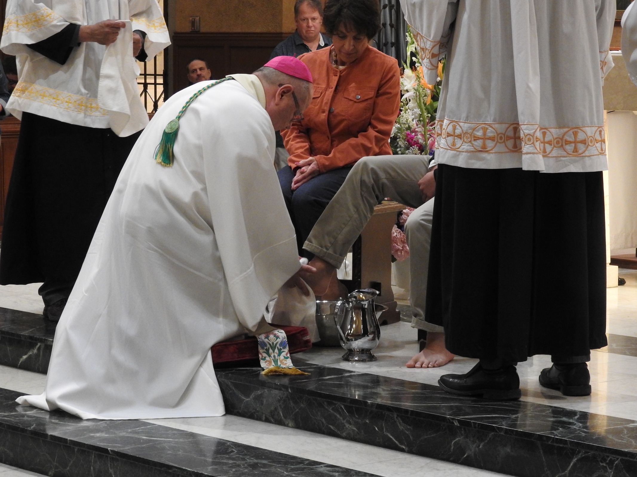 During the liturgy, Bishop Edward Malesic, the principal celebrant, washed the feet of a dozen cathedral parishioners in memory of what Jesus did at the Last Supper.