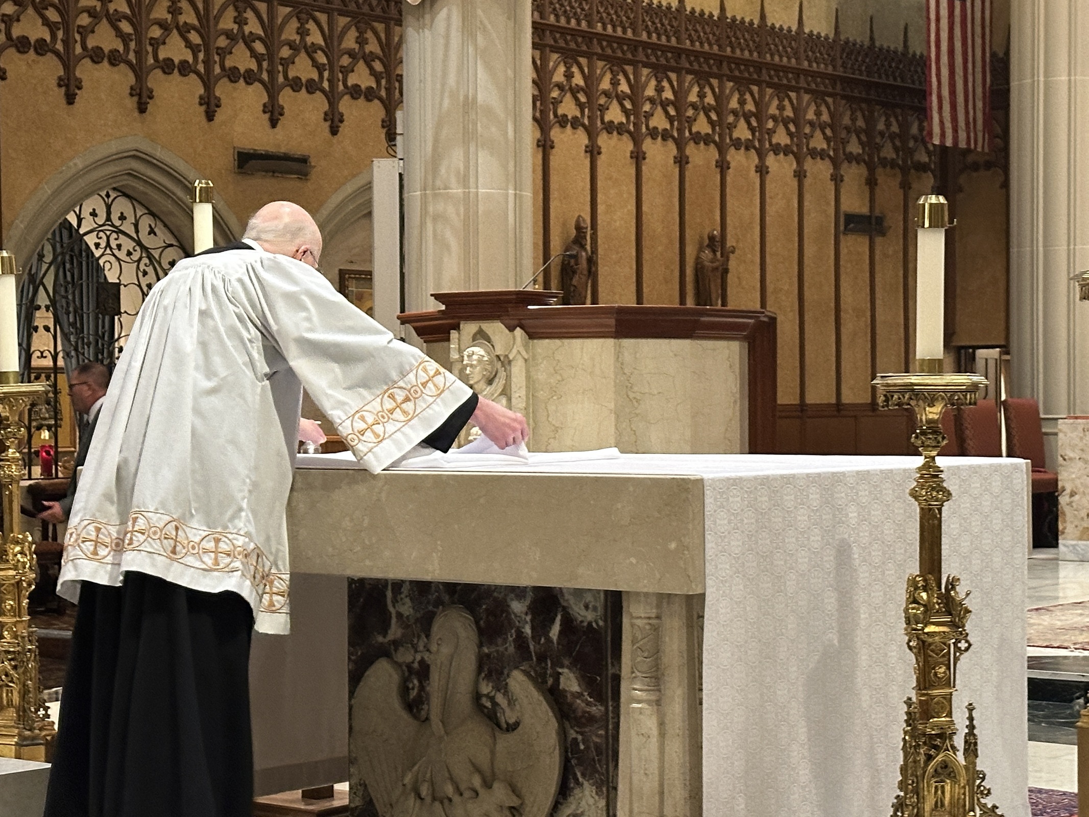 After Communion, the Eucharist was moved to the altar of repose in the Blessed Mother’s nave and the altar was stripped in preparation for the Good Friday Passion liturgy. The faithful were invited to spend time in prayer and adoration before night prayer.
