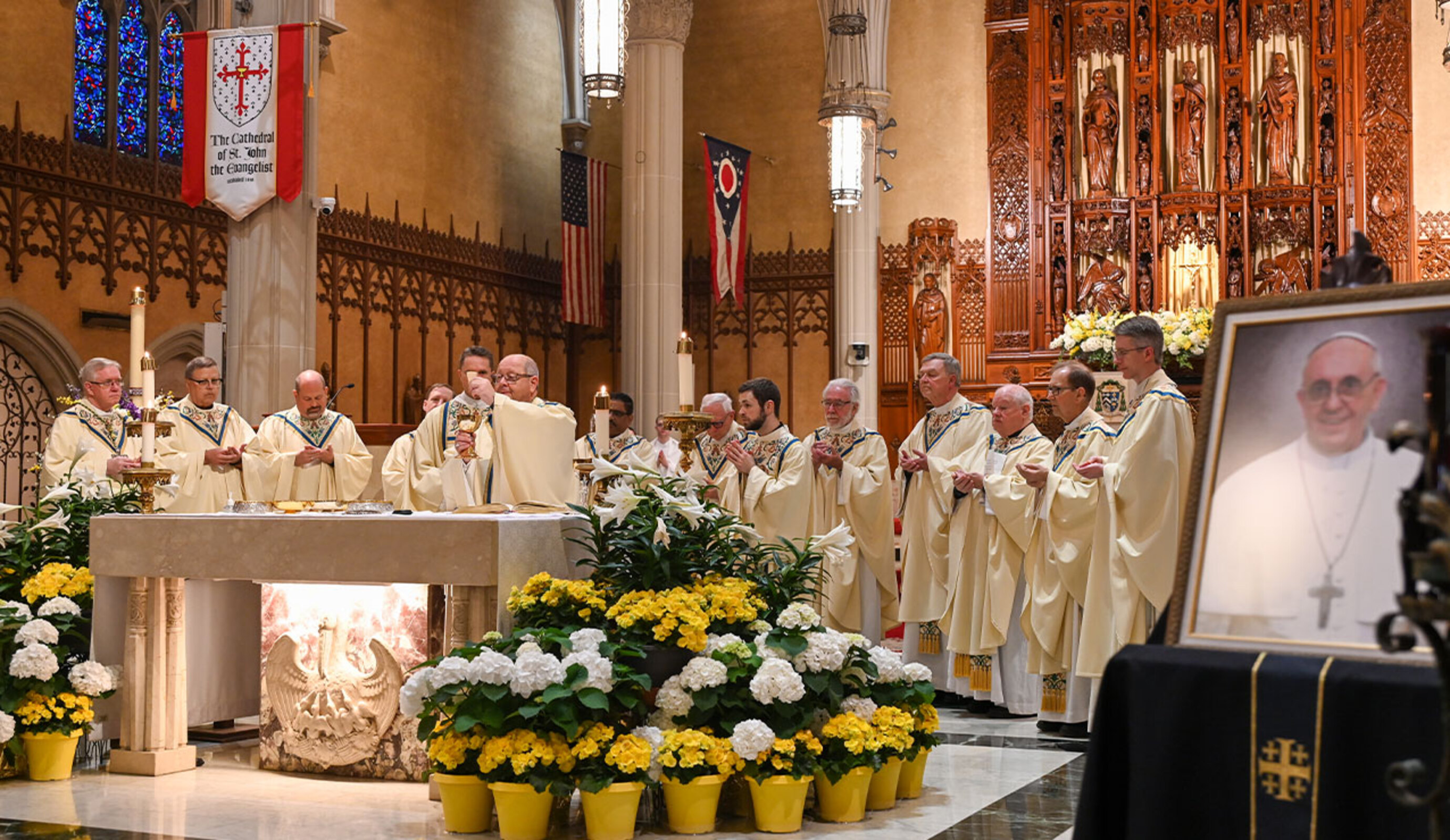 Bishop Edward Malesic, Auxiliary Bishop Michael Woost and a number of priests from around the eight-county Diocese of Cleveland remembered the late Pope Francis during a memorial Mass April 28 in the Cathedral of St. John the Evangelist. The liturgy, which was livestreamed, can be viewed on demand here.