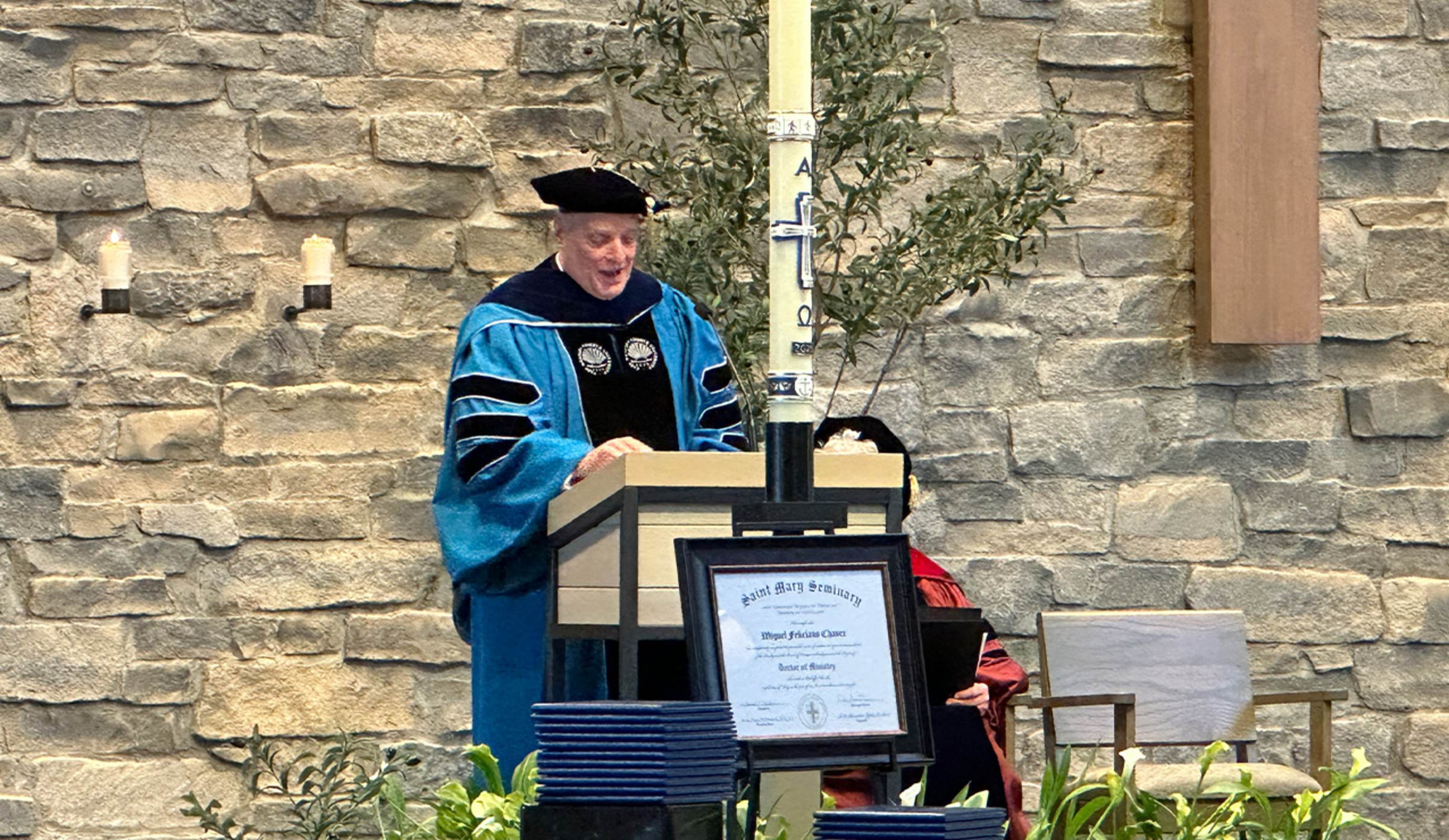 Father Mark Latcovich, former president/rector of Saint Mary and Borromeo seminaries who is pastor of St. Ladislas Parish in Westlake, was the commencement speaker.