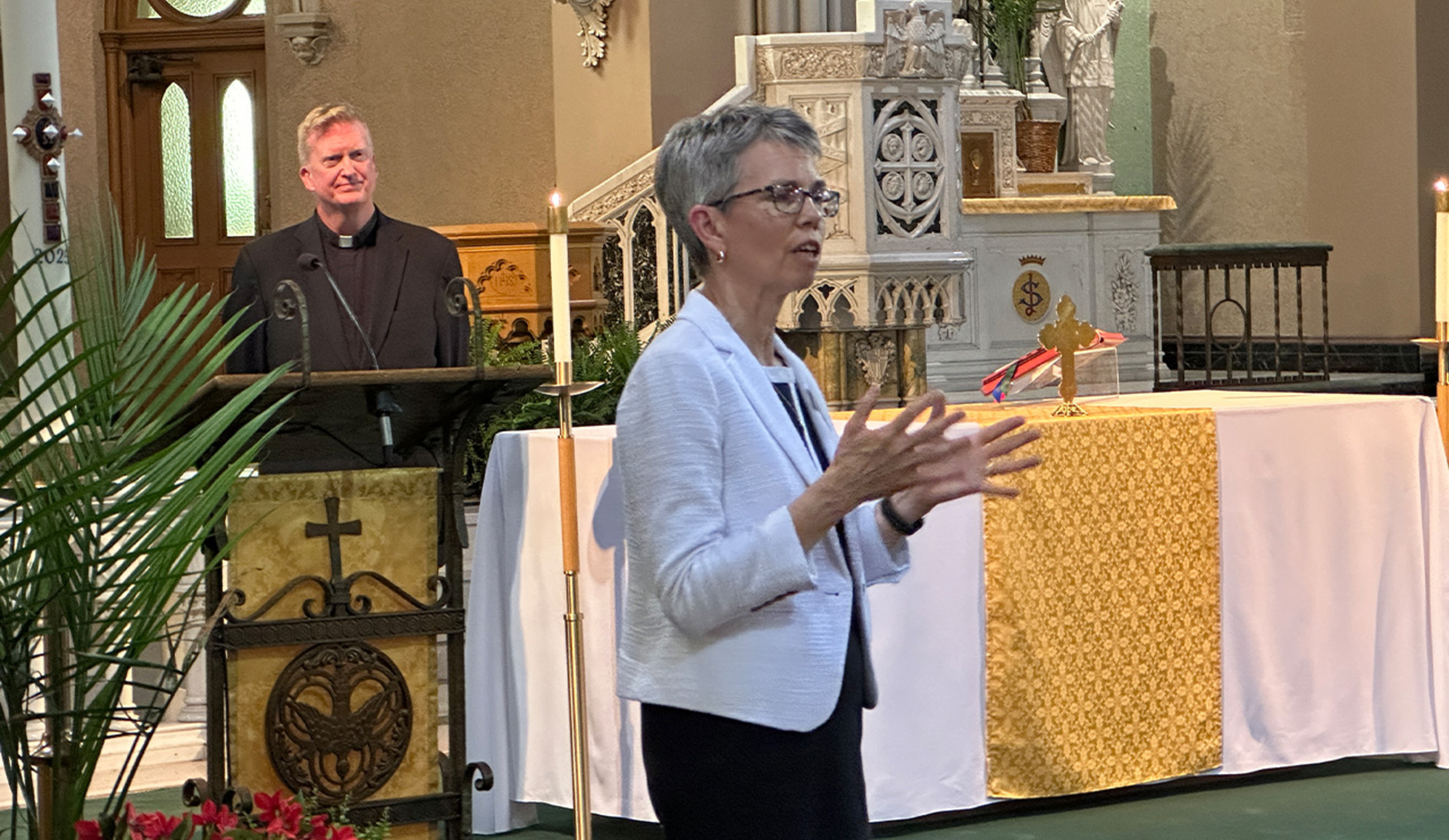 Father Mike Gurnick welcomed members of the St. John the Evangelist Leadership Guild as they gathered for Mass in St. Patrick Church on Bridge Avenue in Cleveland’s historic Ohio City neighborhood.