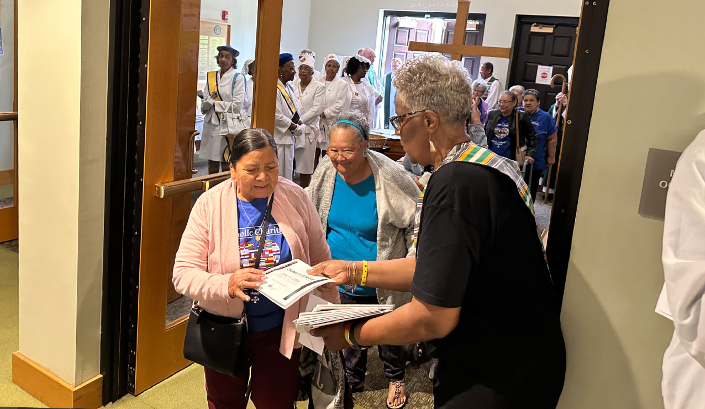 Sister Nesmith said she was pleased to see the diversity in the crowd, noting the celebration was not just for the Black community, but for everyone. Among the attendees was a busload of people from the Hispanic Senior Center at St. Michael the Archangel Parish on Cleveland’s West Side. Sister Nesmith said delegates from that group and the OBCM shared a bus last summer when they traveled to the National Eucharistic Congress in Indianapolis, Indiana. One of the delegates remarked that it was like a reunion to gather with members of the OBCM for the Juneteenth event.