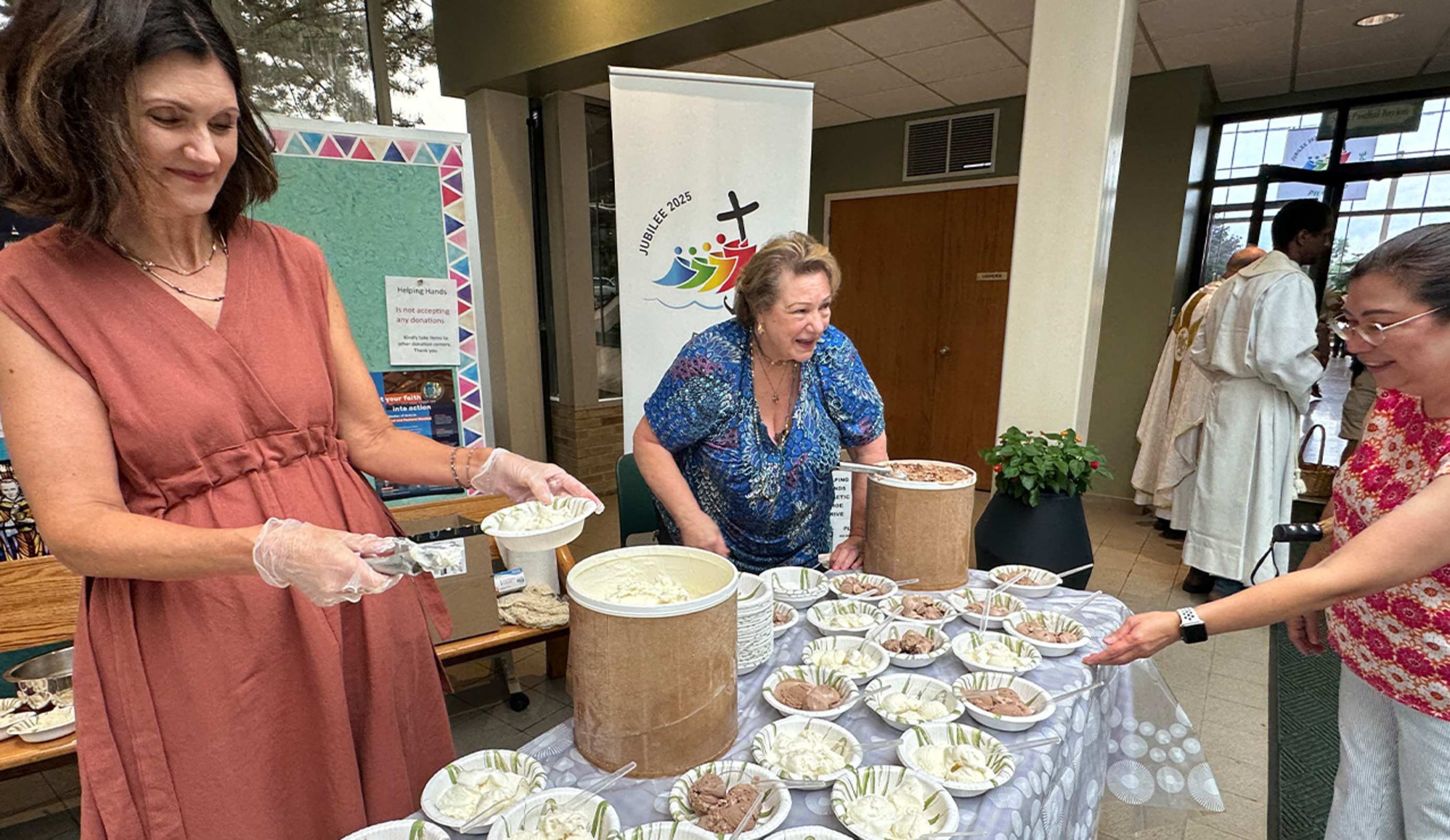 After Mass, there was a candlelight procession in the church followed by an ice cream social featuring the two Jubilee Year ice cream flavors, Pilgrim Tracks and Jubilee Indulgence. Pilgrims also could visit the shrine and get their Jubilee Year passports stamped. Several people said it was their first visit to the shrine.