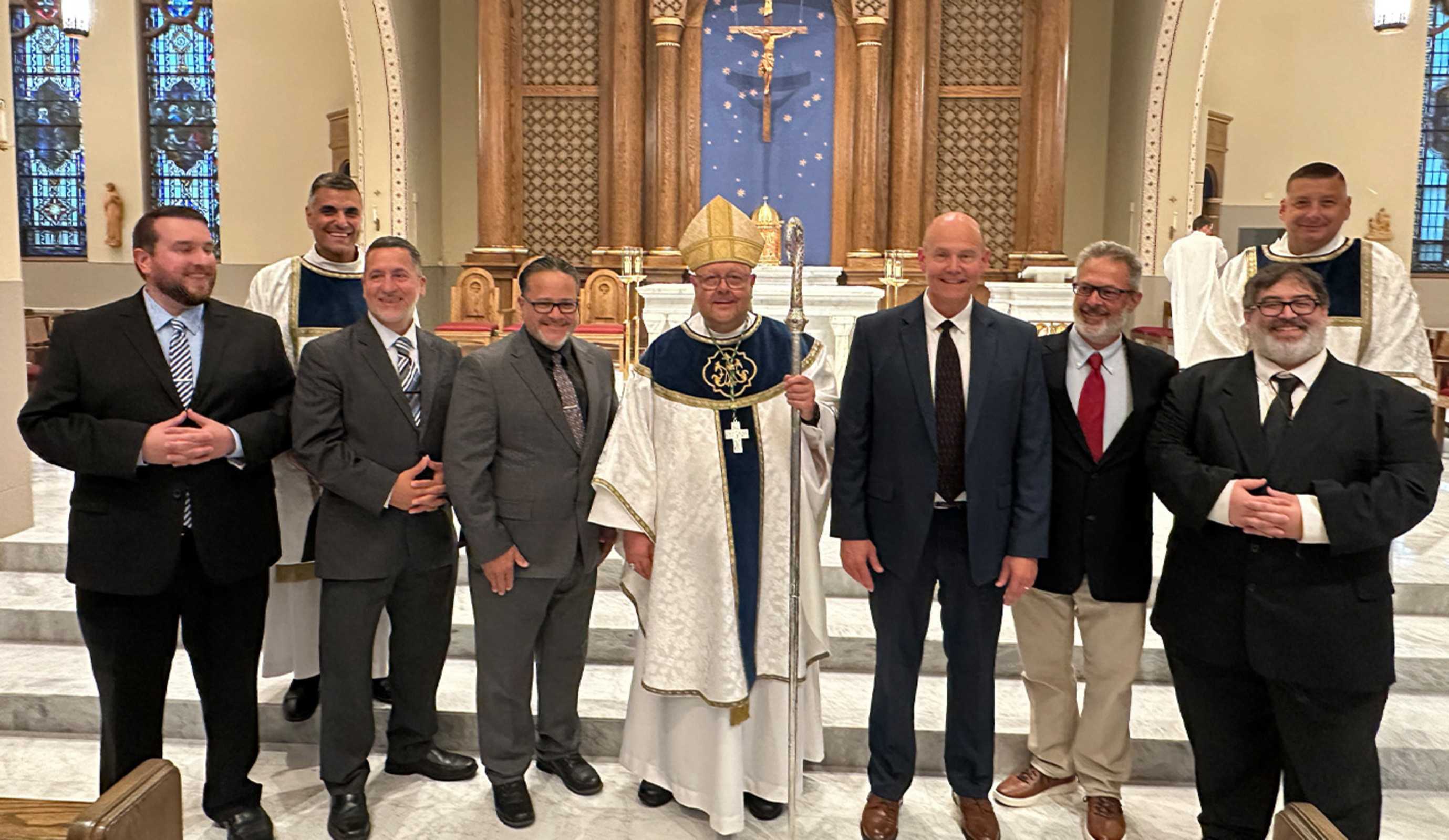 Six men were admitted to candidacy during a Mass on Aug. 8 at the Center for Pastoral Leadership in Wickliffe. Deacon George Malec, director of the permanent diaconate program, said they have completed two years as aspirants and are entering a three-year formation program as they continue discerning their call to ordination as permanent deacons.