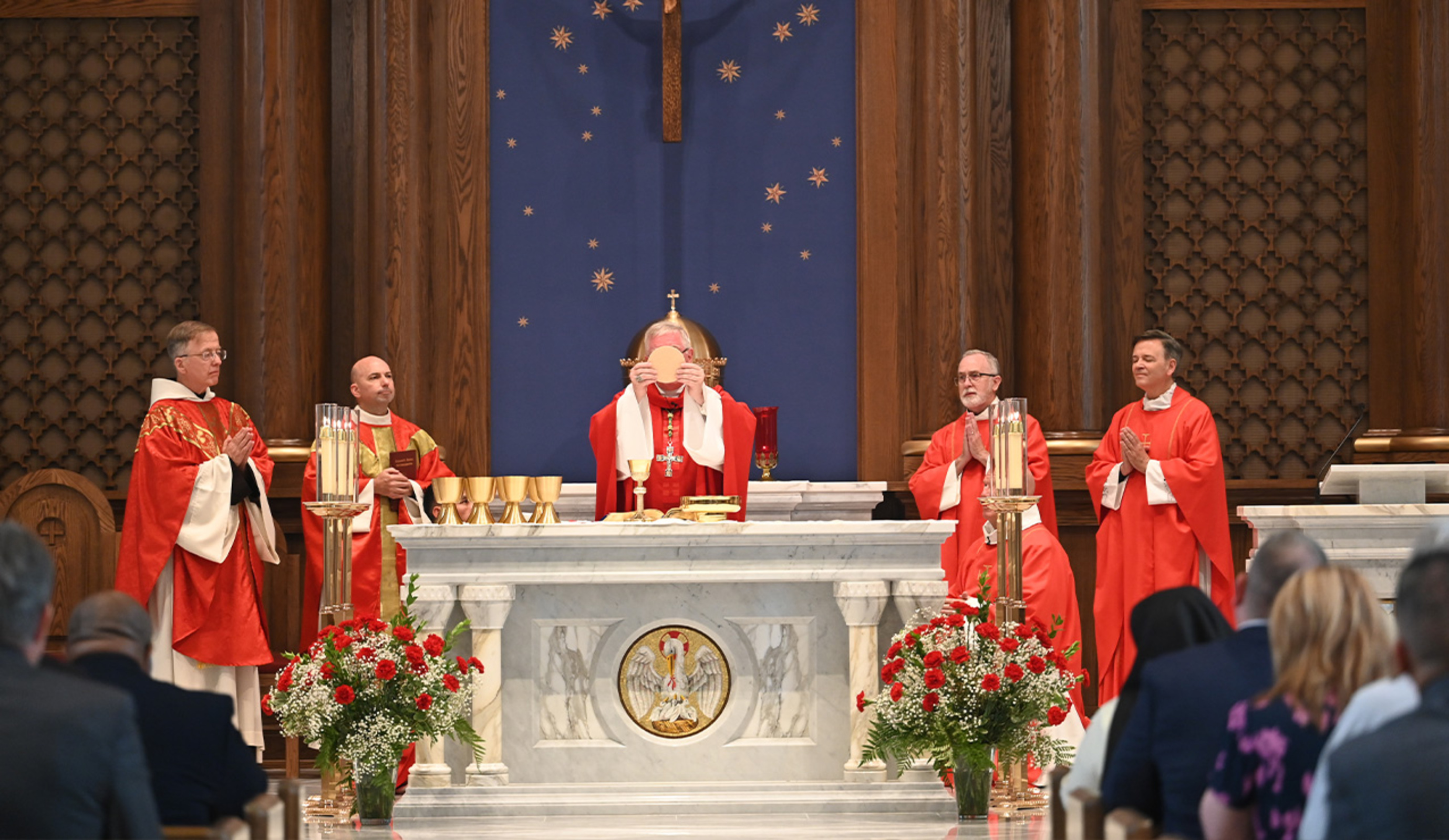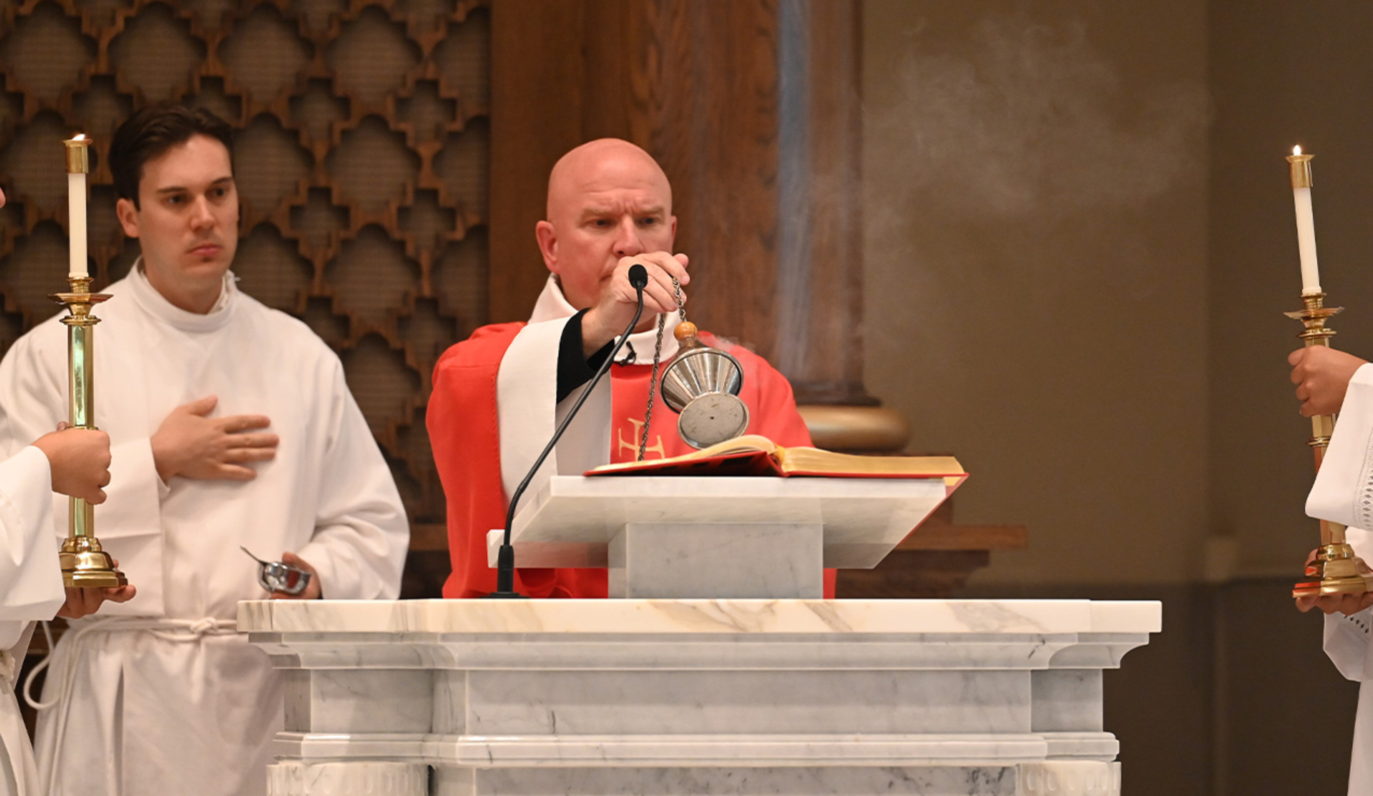 The Mass, which traditionally begins each new formation year, was celebrated by Auxiliary Bishop Michael Woost. Concelebrants included Father Andy Turner, president/rector of the seminaries, Father Mick Joyce, OFM Cap, Father Bill Bouhall and Father David Bline. Assisting at the altar was Deacon George Malec, who directs the permanent diaconate formation program.