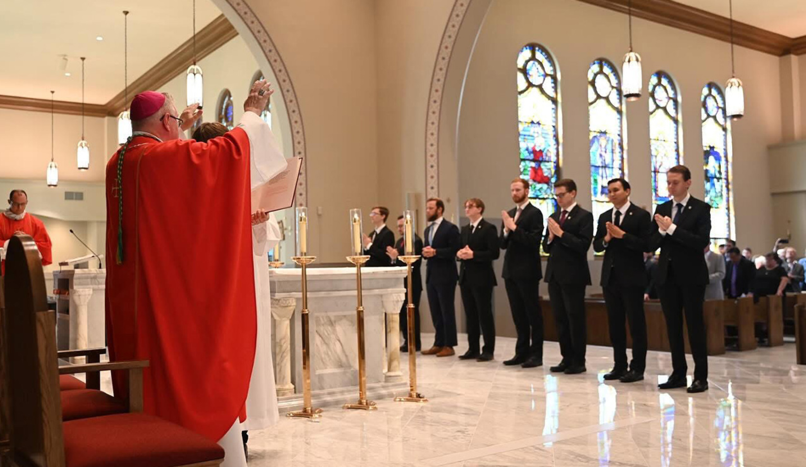 Auxiliary Bishop Michael Woost accepted eight candidates who are in their first year of theological study and priestly formation at Saint Mary Seminary and Graduate School of Theology as candidates for ordination as deacons and priests during a Mass Sept. 14 at the Center for Pastoral Leadership in Wickliffe.