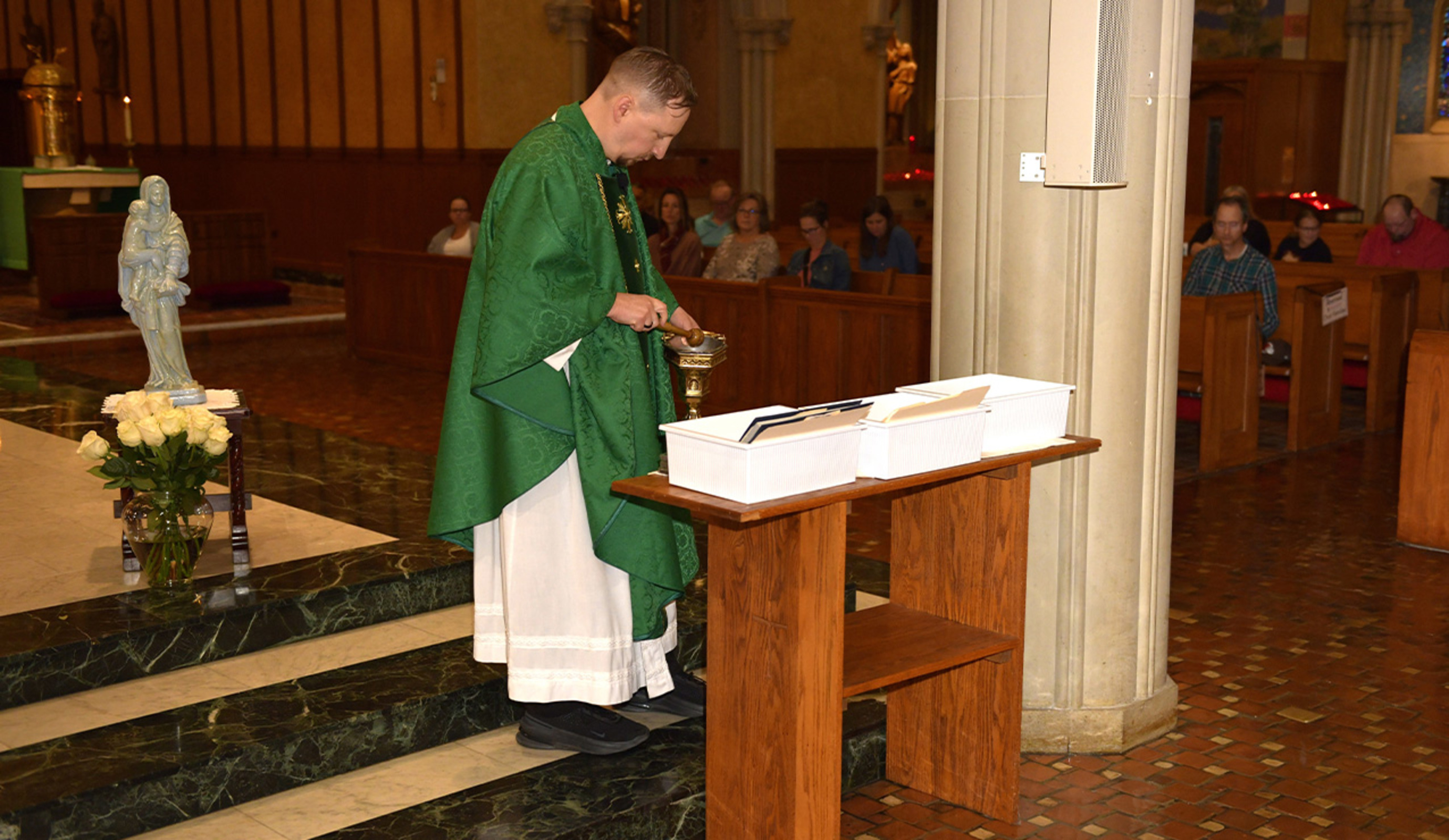 “Come here not to stay the same. Come to be changed,” Father John Pfeifer told scouts and their families who gathered Oct. 12 in the Cathedral of St. John the Evangelist for the annual Diocesan Court of Honor liturgy. Father Pfeifer and Father Bob Stec, Diocesan Catholic Committee on Scouting chaplains, celebrated the Mass.