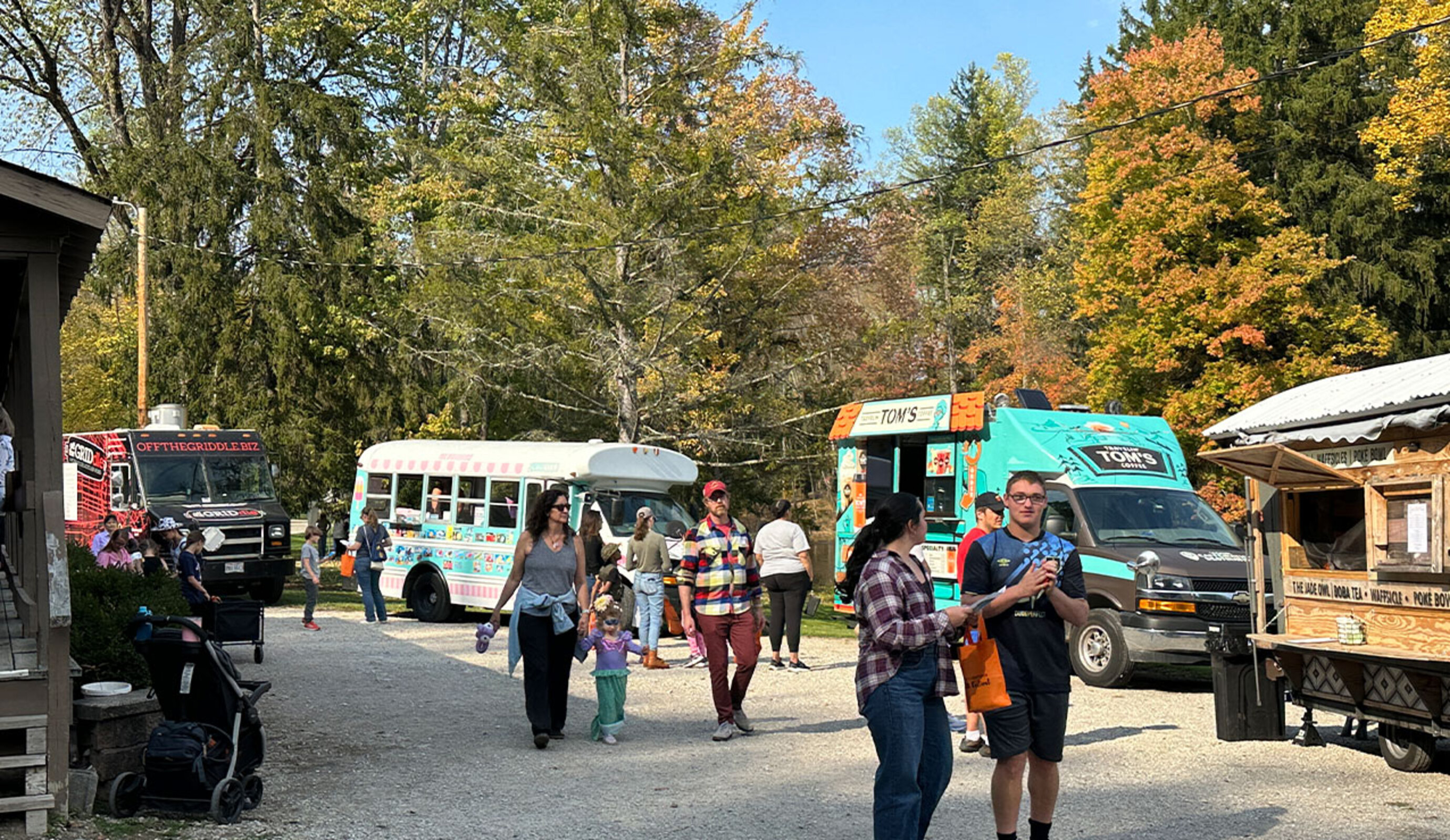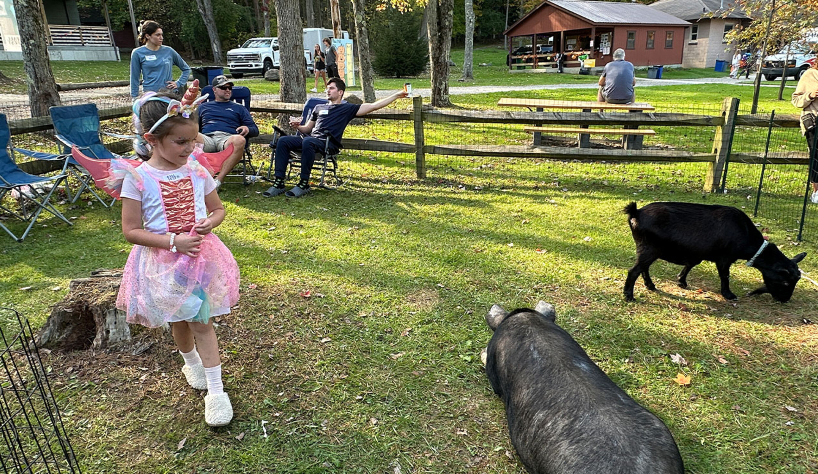 There was an area featuring family-friendly games, trick-or-treating around the campgrounds, a small petting zoo, a photo opp where visitors could measure their height, candy stations, vendor and craft tables, raffle baskets to support Catholic Charities Summit County, a magic show, improv show, six hay rides throughout the afternoon, face painting, a balloon artist and more. Visitors also could climb on a tractor and pose for photos. The camp store was open selling camp merchandise, popcorn and adult beverages.