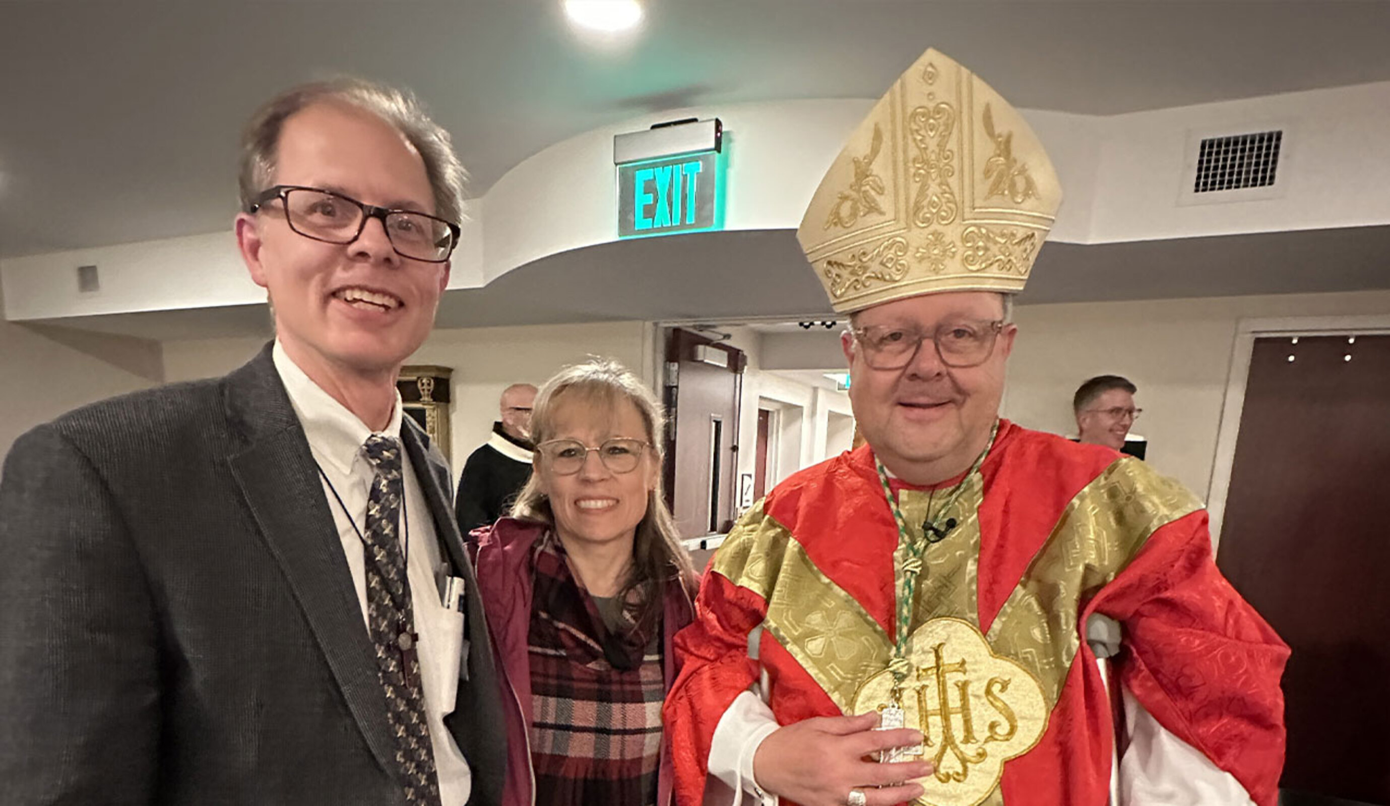 The bishop, who is recovering from recent ankle surgery – his second this year -- shared his story, and his hope, with the group, which includes doctors, nurses, medical students and others in the medical profession.