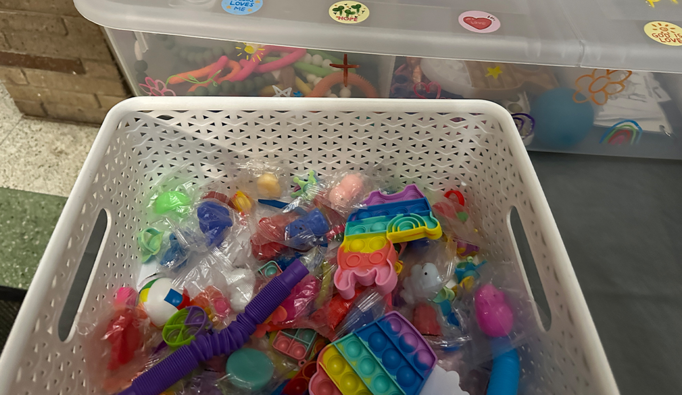 A sensory box was available in the church’s gathering area containing items that those with sensory issues might find comforting to have during Mass.