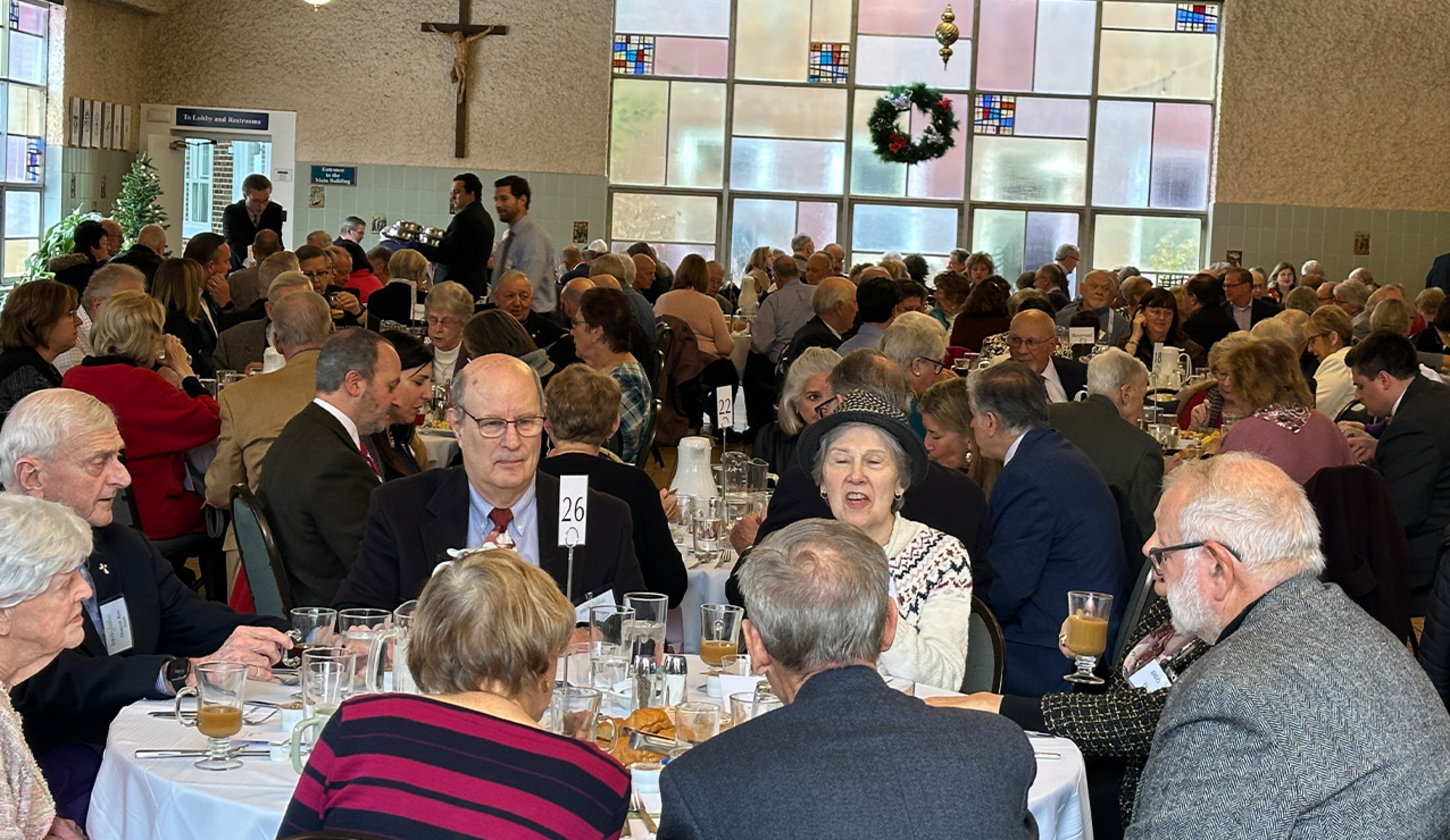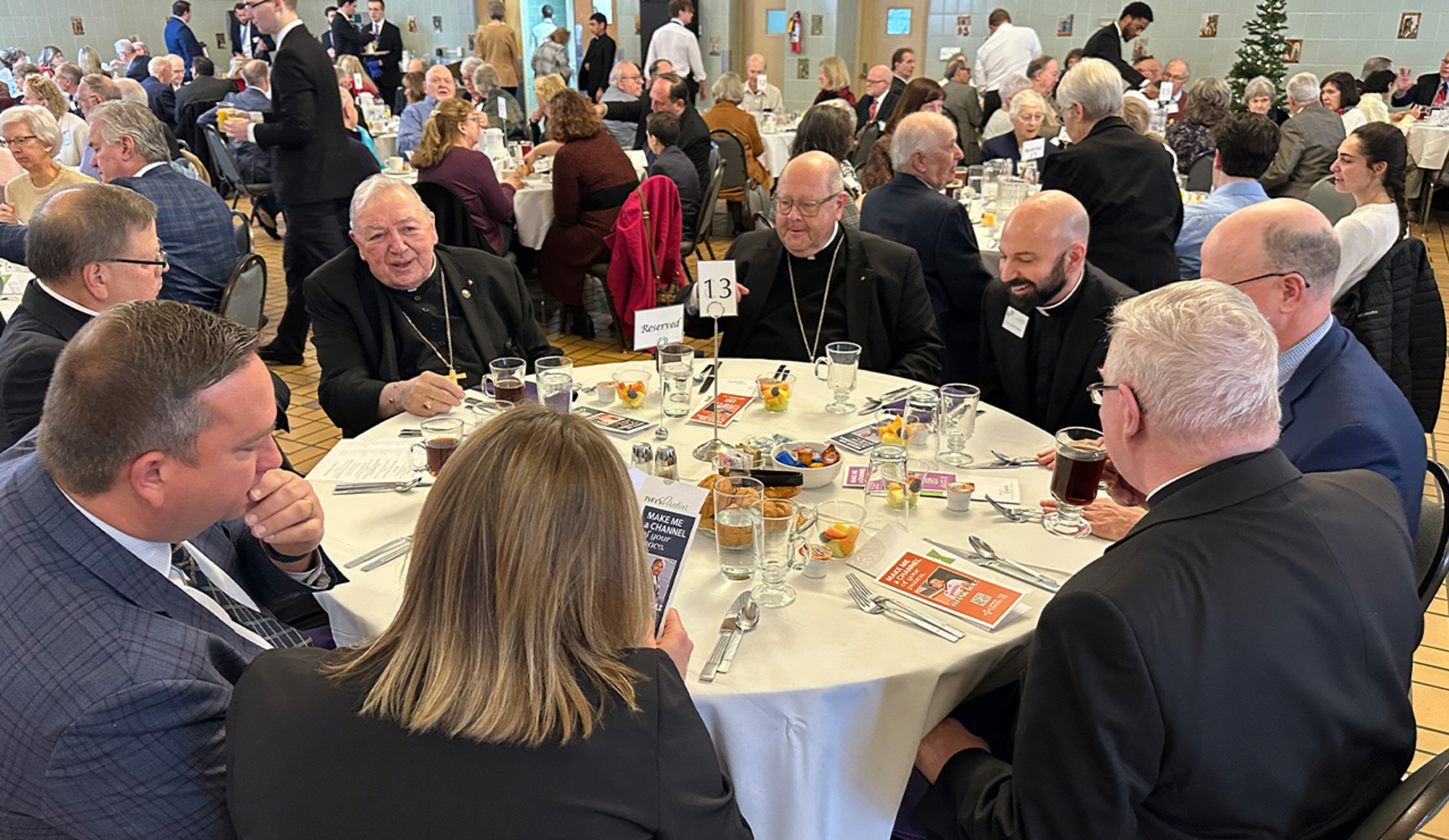 More than 200 people filled Founders Hall at the CPL for the brunch and awards, including some of Bishop Gries’s family, Catholic Charities donors and many friends. Bishop Malesic celebrated the Mass with Auxiliary Bishop Michael Woost, Bishop Gries, Father Don Oleksiak, diocesan vicar general and moderator of the curia, and Father Andy Turner, president/rector of Borromeo and Saint Mary seminaries, as concelebrants.