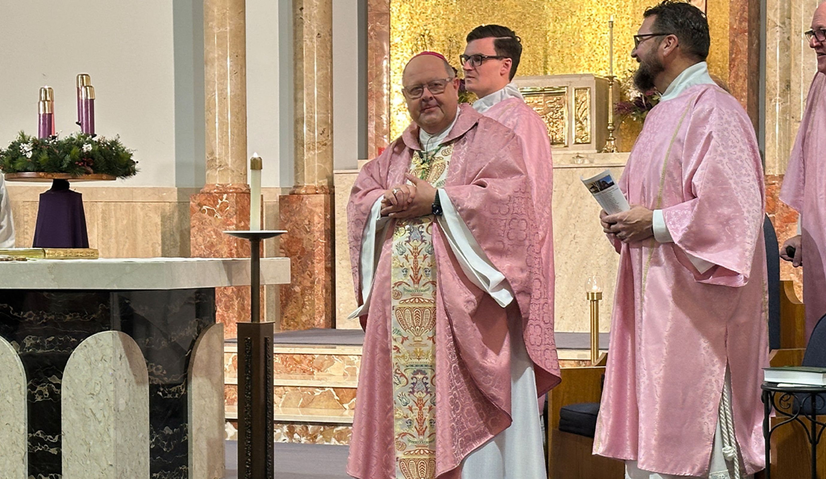 The bishop asked the congregation about the strength of their faith and encouraged them to heed Jesus’ call to “come, follow me.”