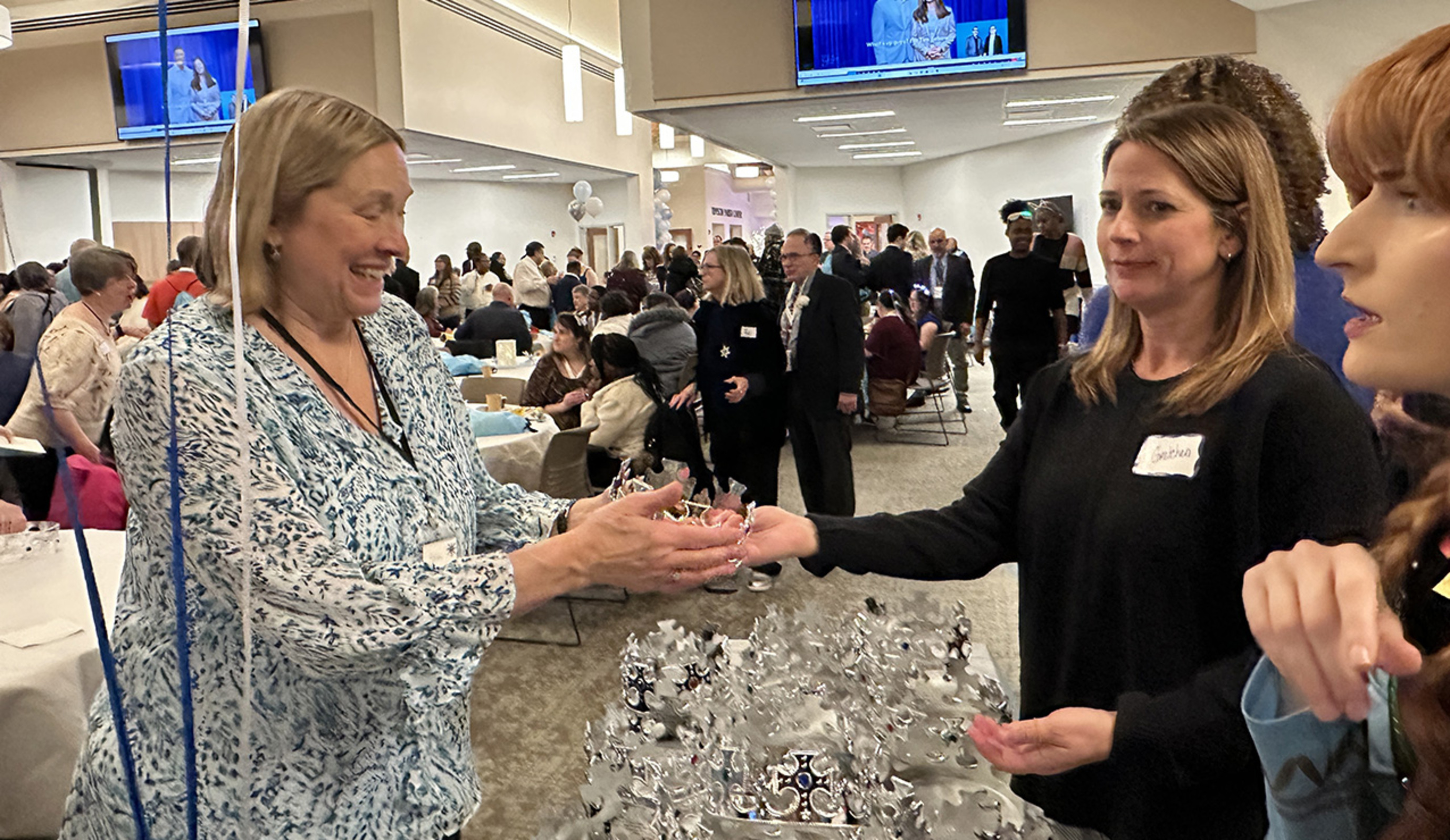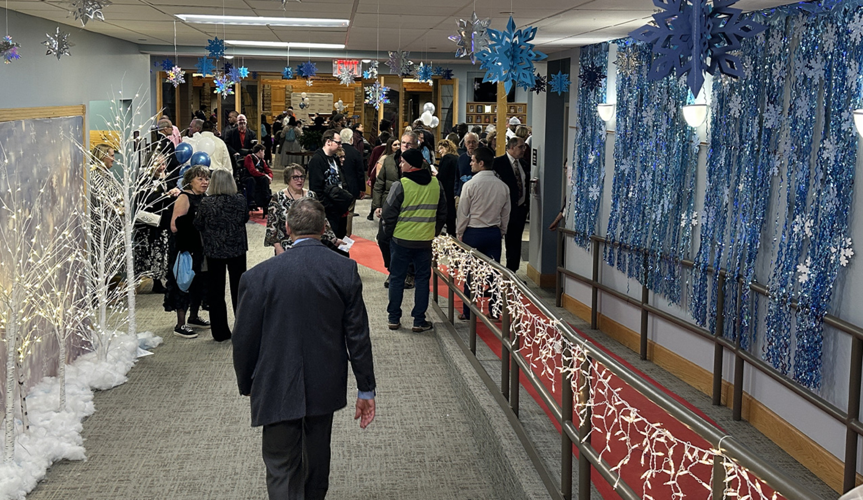 Attendees were awed by the decorations volunteers collected to reflect the evening’s theme, “A Winter Wonderland.” There were white trees with tiny lights, silver streamers, a castle and decorations on dozens of tables in the church hall.